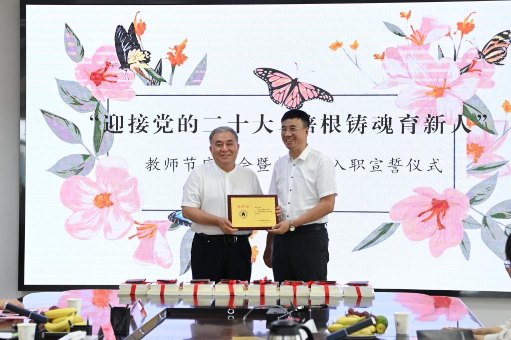 9月9日下午,在教师节和中秋节巧遇前夕,bat365举办庆祝第38个教师节活动。校领导秦华伟、杨晓明、冯东元、郭艳萍、李富堂以及相关部门负责人出席活动,2021、2022年新入职教职工、部分老教授和教职工代表参加,活动由李赟鹏校长主持。