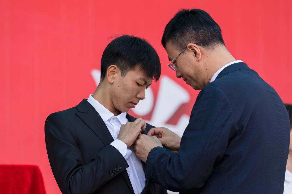 典礼上,党委书记秦华伟为学生代表佩戴了校徽。从全体同学戴上校徽的这一刻起,标志着全体新生真正成为一名“财专人”,也赋予了同学们新的责任和使命。