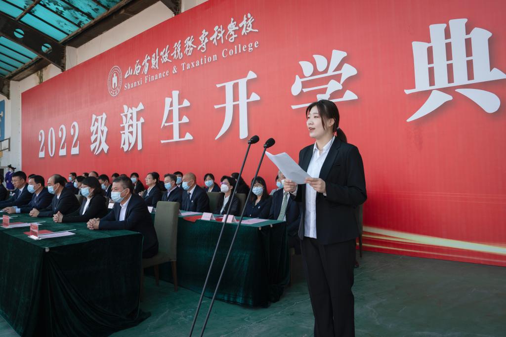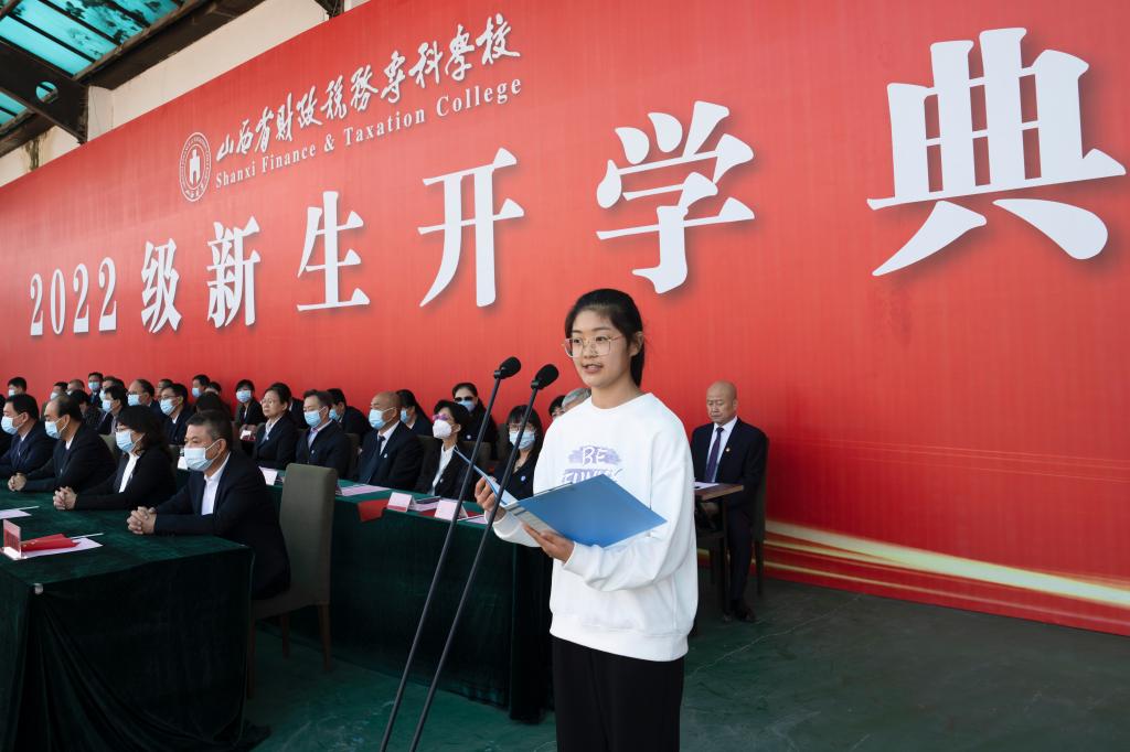 商学院2022级市场营销高本贯通二班温新代表新生发言,表示将严格遵守学校规章制度、刻苦学习、团结友爱,努力成长为有知识、有本领、爱国奉献、追求卓越的新时代青年。