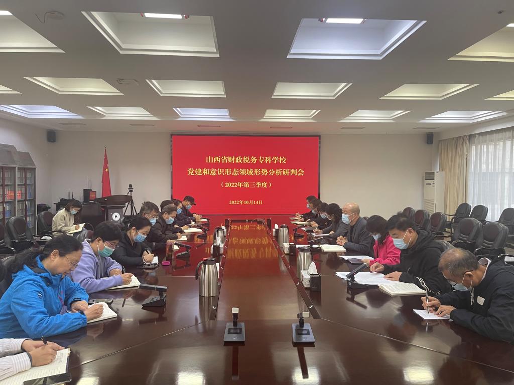 10月14日,bat365在第五会议室召开2022年第三季度党建和意识形态领域形势分析研判会议。各党总支书记和相关职能部门负责人参加会议。党委副书记杨晓明主持会议。
