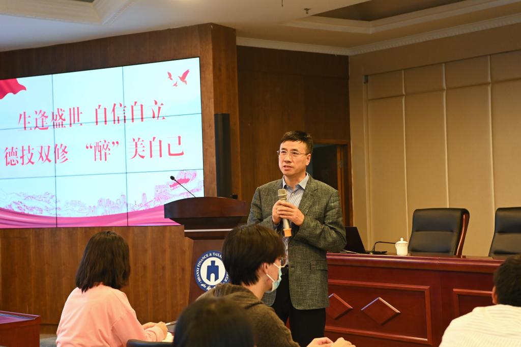 10月28日下午,校党委书记秦华伟在实训楼七层会议室以《生逢盛世 自信自立 德技双修 “醉”美自己》为题为2022级新生上了一堂既生动又深刻的思政课。