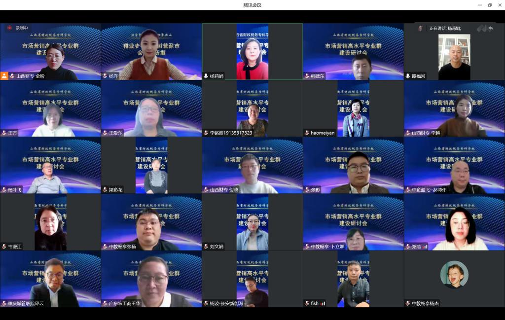 为确保高质量完成市场营销高水平专业群建设工作,11月14日和15日,商学院在线上召开了市场营销专业群建设研讨会。此次会议分为院校交流研讨专场与校企交流研讨专场,来自全国双高院校专家、知名企业代表和商学院全体教师共同参加了会议。会议由商学院副院长杨莉娟主持。