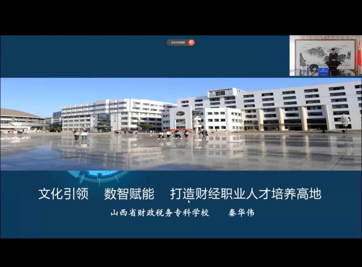 秦书记发言的主题为"文化引领 数智赋能 打造财经职业人才培养高地",以党的二十大报告对职业教育的重要论述开篇,分别从"坚持专业特色打造财经名校、专业文化承载打造文化财专、三智工程支撑打造数智财专"三个方面进行了阐述,三个"打造"突出了学校的办学特色,总结了学校"双高"建设的主要成就,充分展示了学校人才培养工作的创新引领优势。