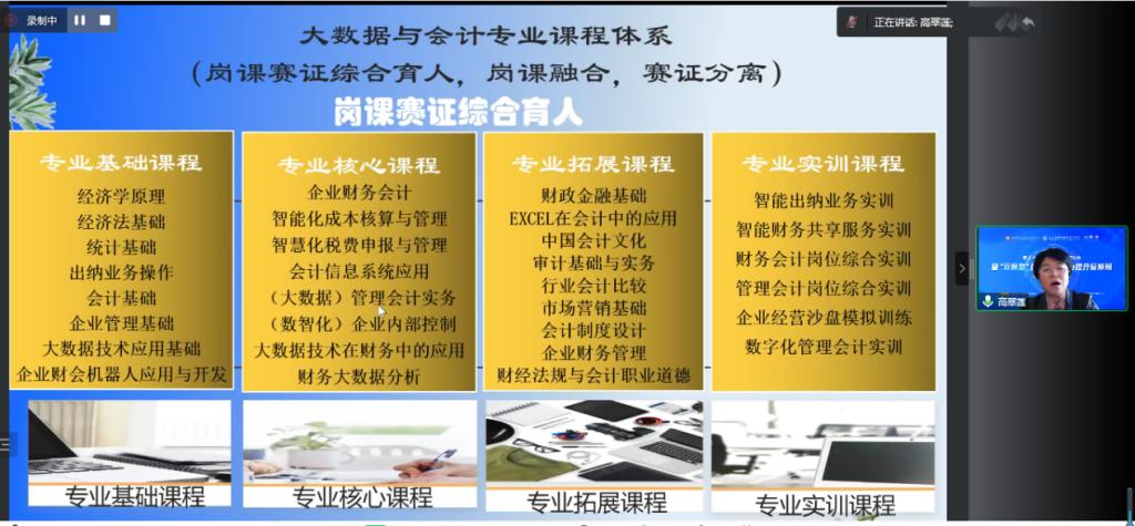 陕西财经职业技术学院马西牛教授做《高等职业院校(专科)大数据与审计专业建设课程体系和三教改革》的主题报告分享。报告围绕大数据与审计专业课程和三教改革等内容。通过报告让大数据与审计专业的改革路径更加清晰,为各位老师们提供了新的思路想法。
