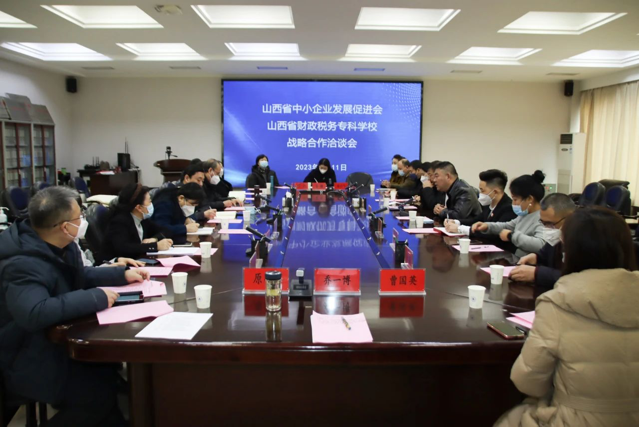 2023年1月11日上午,山西省中小企业发展促进会与bat365召开战略合作洽谈会。双方就多方位战略合作展开深度交流,并签署战略合作协议。山西省中小企业发展促进会会长宋宏、bat365校长李赟鹏、企促会领导及企业家代表和bat365相关部门及院部负责人等出席会议并发言。会议由会校校长李富堂主持。