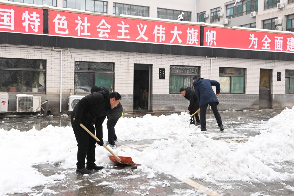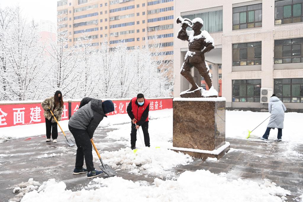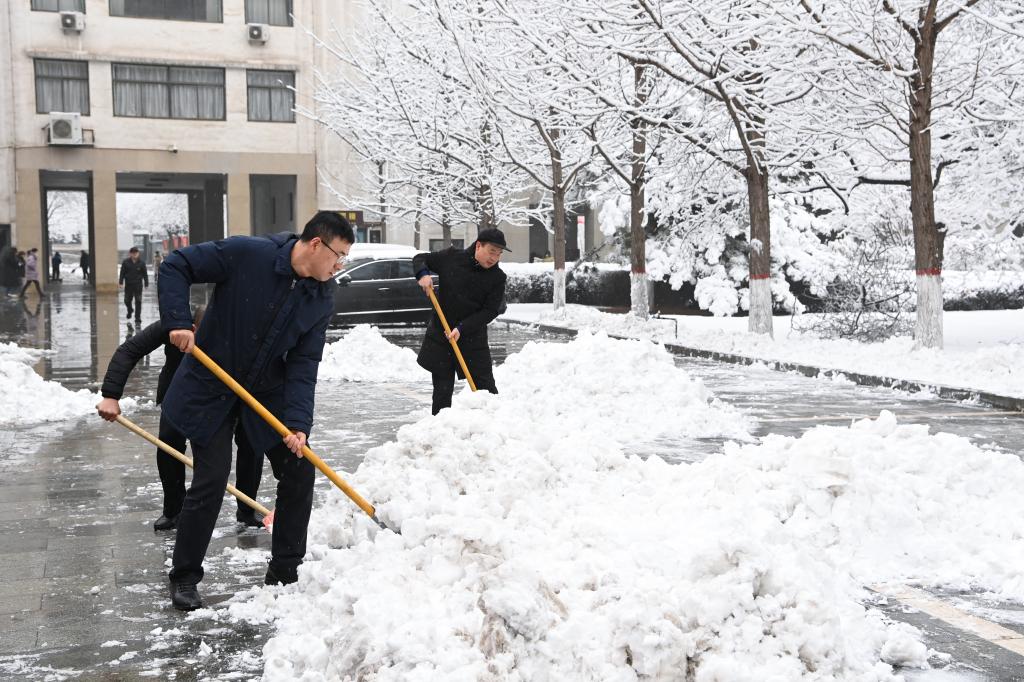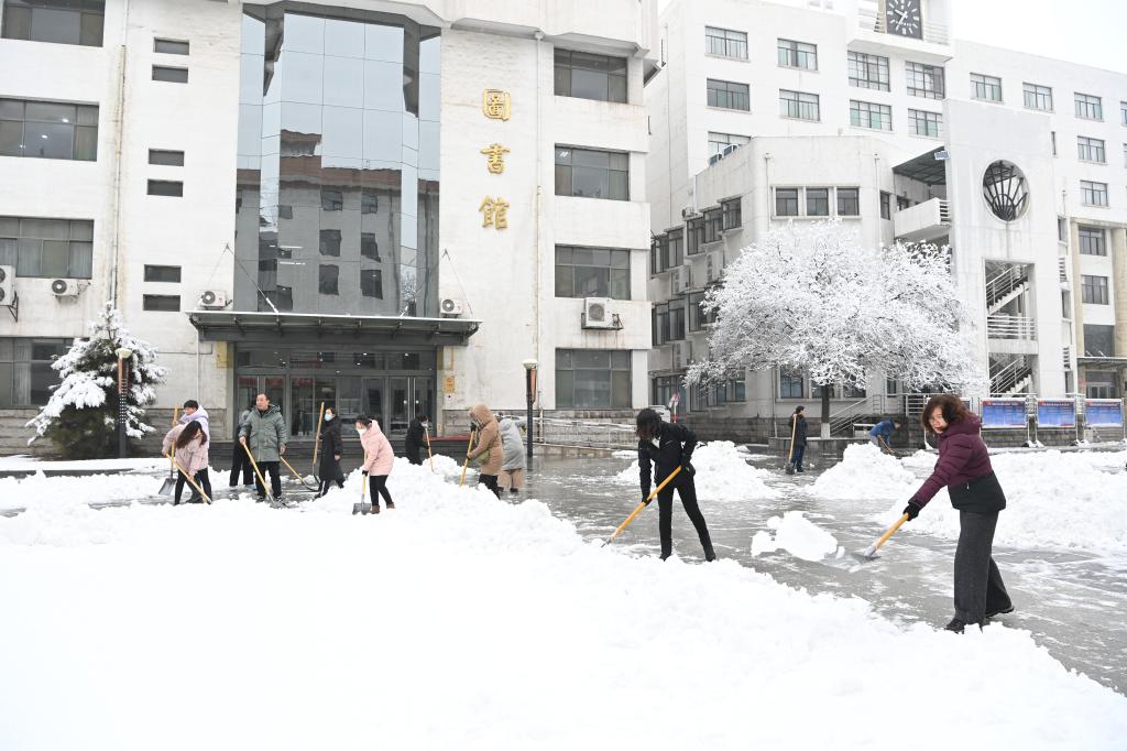 在新学期师生返校当天,一场大雪把学校装扮得银装素裹,但也给校园安全带来许多隐患,学校主干道及周边遍地积雪,严重影响了校园出行。为了防止积雪结冰造成学生返校的安全问题,bat365全体教职员工在校领导的带领下积极投入到积雪清扫、垃圾清理的工作中去。大家不畏严寒,挥舞着铁锹、推铲等劳动工具,铲的铲、推的推,团结协作、配合默契,干得热火朝天,忙碌的身影构成了一道亮丽的风景线,为保证学生的安全,贡献自己的一份力量。