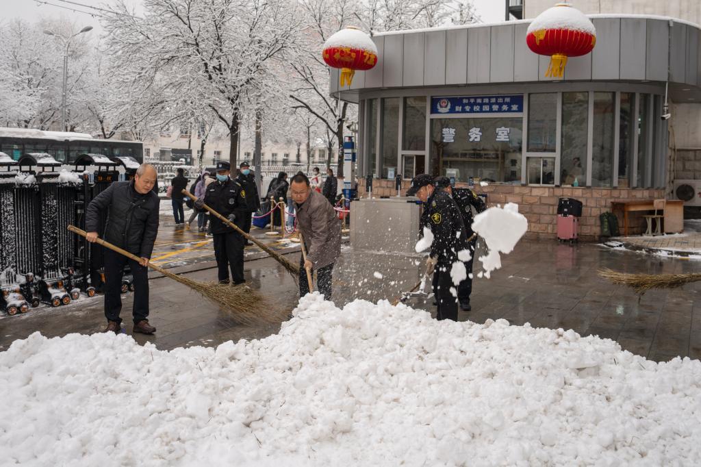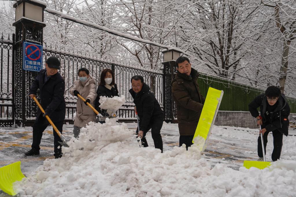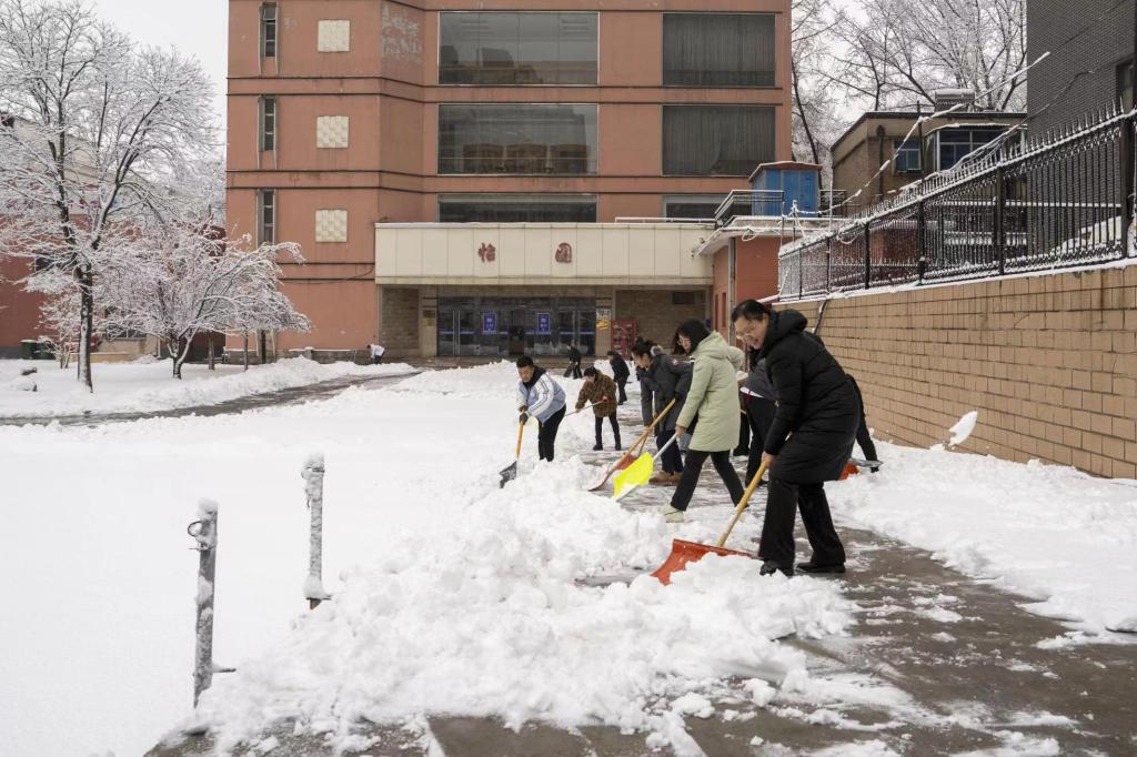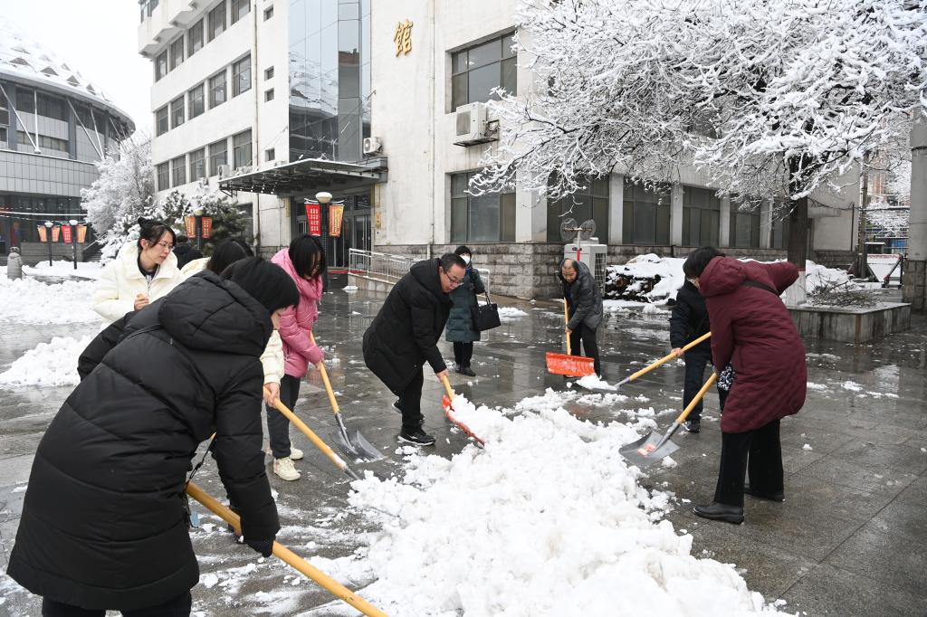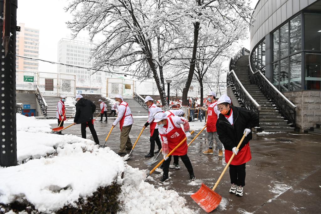 在新学期师生返校当天,一场大雪把学校装扮得银装素裹,但也给校园安全带来许多隐患,学校主干道及周边遍地积雪,严重影响了校园出行。为了防止积雪结冰造成学生返校的安全问题,bat365全体教职员工在校领导的带领下积极投入到积雪清扫、垃圾清理的工作中去。大家不畏严寒,挥舞着铁锹、推铲等劳动工具,铲的铲、推的推,团结协作、配合默契,干得热火朝天,忙碌的身影构成了一道亮丽的风景线,为保证学生的安全,贡献自己的一份力量。