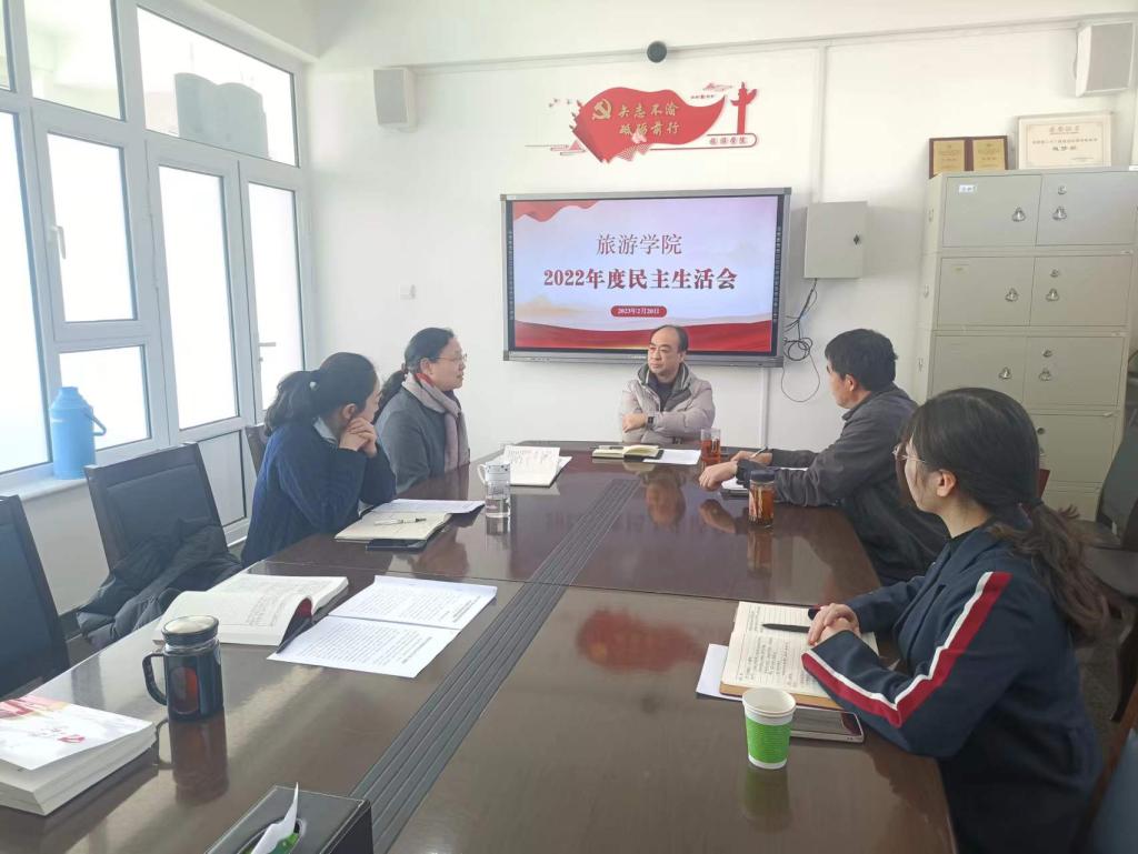 2月20日上午10:00,旅游学院党总支在313会议室召开2022年度民主生活会,校党委委员、纪委书记段文辉和纪检监察机构魏雪茹到会指导。