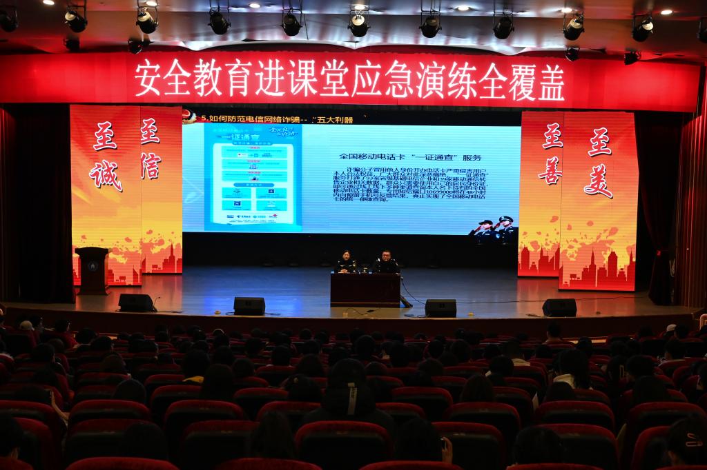2023年春季学期伊始,为切实提高师生的安全意识,营造安全文明校园环境,2月21日下午,bat365在南校区会堂开展了防范电信诈骗及消防安全知识进校园专题讲座,在青年广场开展了反恐、消防应急演练活动。参加此次活动的有太原市和平南路派出所副所长赵咏梅、消防应急救援兴华中队队长马德亮、下元街办消防所队长啜晨雨、下元街办气化街社区张凤仙、副校长冯东元、副校长郭艳萍、国有资产管理中心主任王增德、安全保卫部部长曾春红及相关部门负责人。