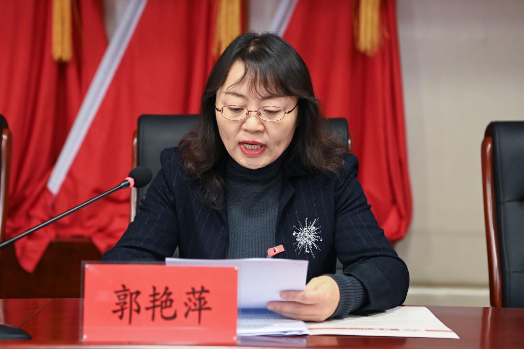 学校第一届妇联主席郭艳萍作表态发言。她表示将努力做好三方面工作:一是加强学习,强化政治思想引领,画好巾帼“同心圆”;二是围绕中心,聚力担当实干创新,发挥“半边天”作用;三是立足服务,搭筑共建“连心桥”。在全体妇女同志的共同努力下,有信心将妇联组织建设成为有吸引力和凝聚力的服务型组织,用实际行动向组织交一份满意的答卷,积极助力学校事业高质量发展,为推进中国式现代化、全面建设社会主义现代化国家作出新的更大的贡献。