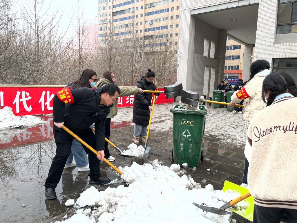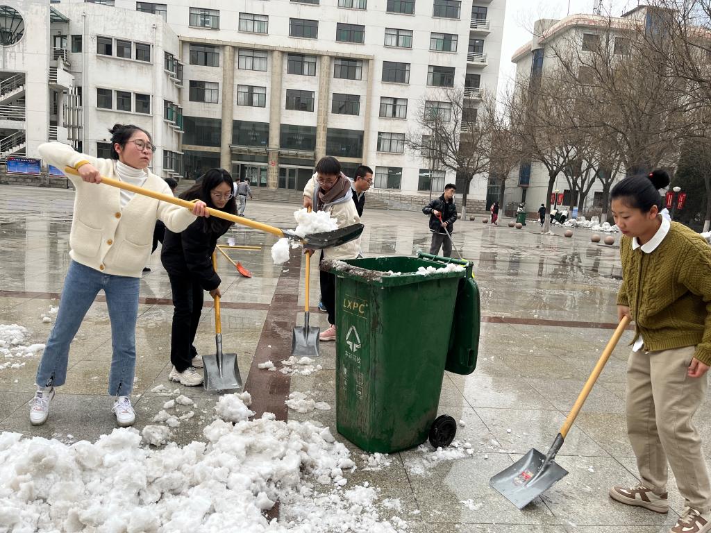清运堆积在校园多日的积雪既是美化校园环境,也是考验广大青年参与劳动、热心奉献的重要时机。在扫雪除冰过程中,广大志愿者们成为校园一道靓丽的风景线。bat365学生志愿者积极响应学校倡议,对各学院责任区域内的积雪进行清运,一条条堆满积雪的道路成为方便行走的“安全通道”。