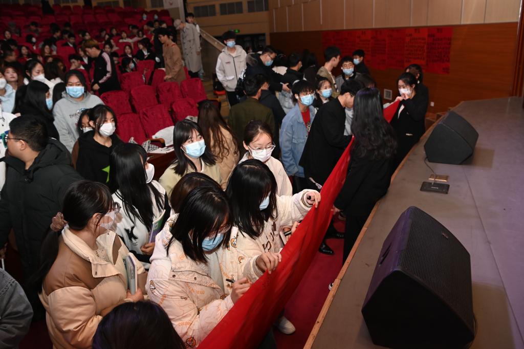 活动最后举行了签名仪式,全场师生在“学习党的二十大精神,肩负起伟大新征程上的青春使命”的红色条幅上进行了签名。