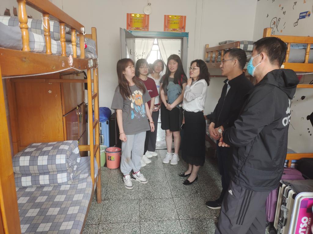 郭艳萍副校长一行走进1、2、3号学生公寓楼,随机对学生宿舍进行了实地查看走访,详细了解学生住宿情况和存在的问题,与学生进行了交流,询问了学生的学习、生活状况,倾听了学生对bat365“一站式”学生社区建设的意见建议,对存在的安全隐患、卫生状况不佳等问题提出了整改要求。