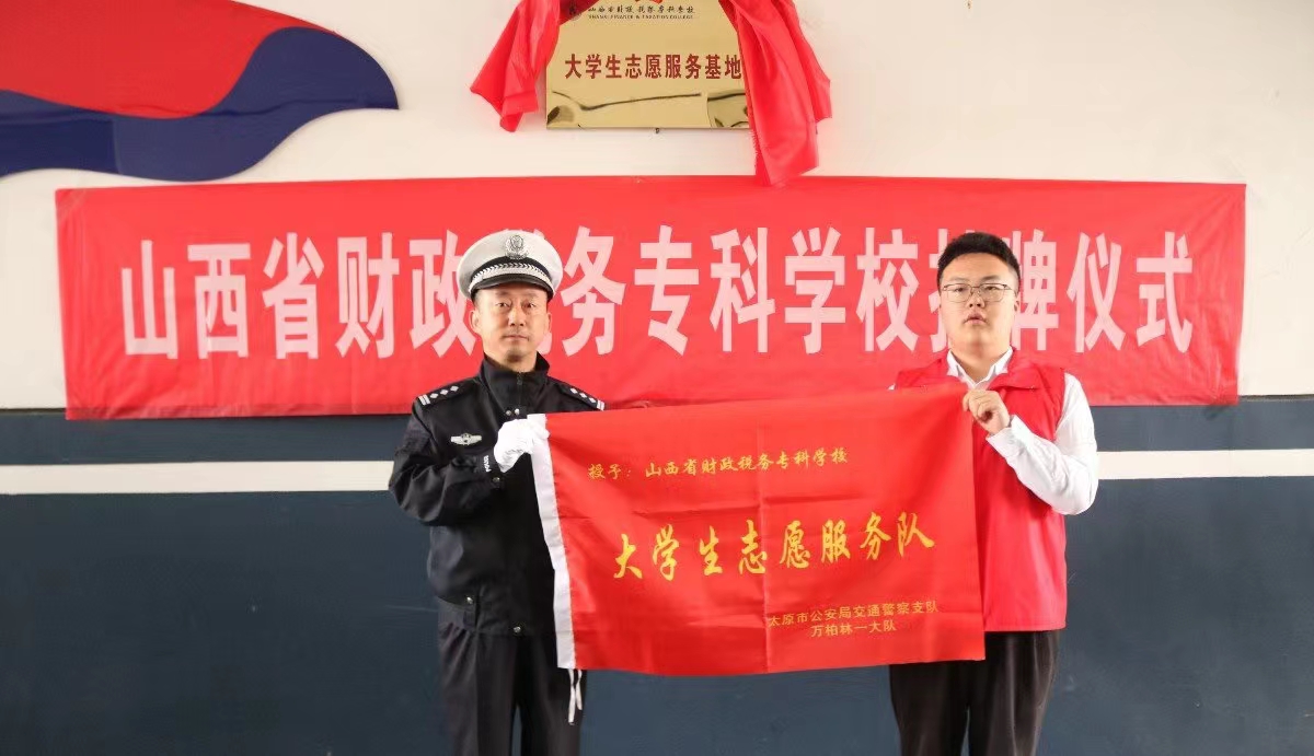 校团委在太原市公安局交通警察支队万柏林一支队举行大学生志愿服务基地挂牌仪式