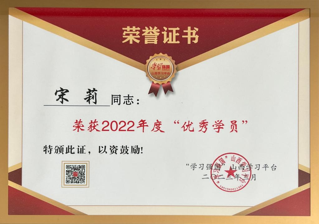 bat365李杰、宋莉两位教师分别被“学习强国”山西学习平台评为学员标兵和优秀学员