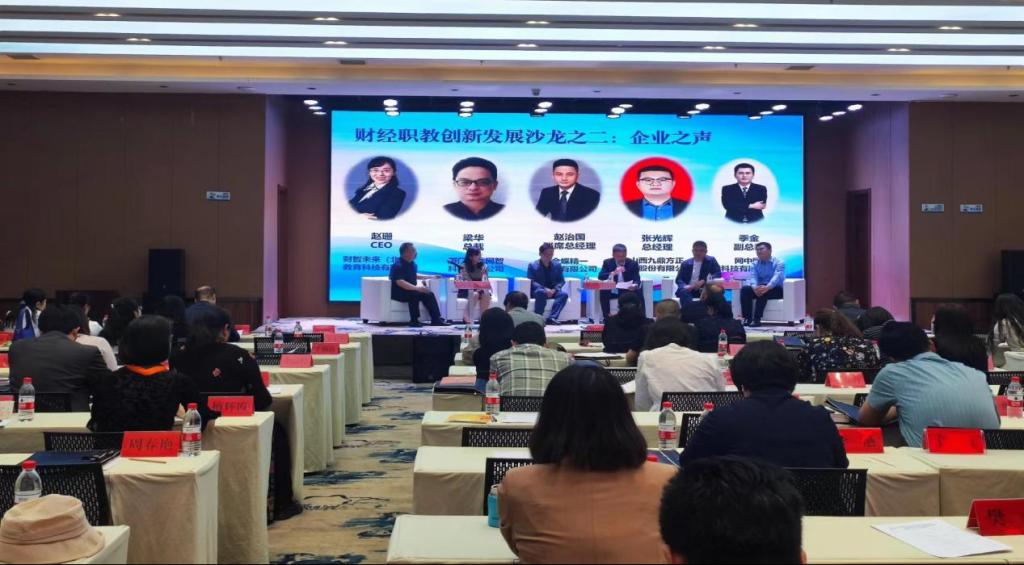 会议第三阶段是企业之声沙龙,由段全虎主持。来自企业的各位代表就产教融合、科教融汇的实践与探索,进行经验分享,展示各自的解决方案,表达了更好服务财经类职业院校教学改革发展的意愿。