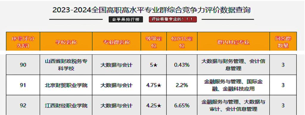 “金平果排行榜” (又称“中评榜”)由杭州电子科技大学中国科教评价研究院、浙江高等教育研究院和高教强省发展战略与评价研究中心、武汉大学中国科学评价研究中心联合中国科教评价网研发,包括中国大学、世界大学、研究生教育和学术期刊四大评价报告,被业界认为是反映我国高职院校办学情况最权威、最全面、最专业的榜单之一。本次排名是“金平果”连续第十二次推出中国高职院校竞争力排行榜,对全国1519所高职院校综合竞争力进行评价。