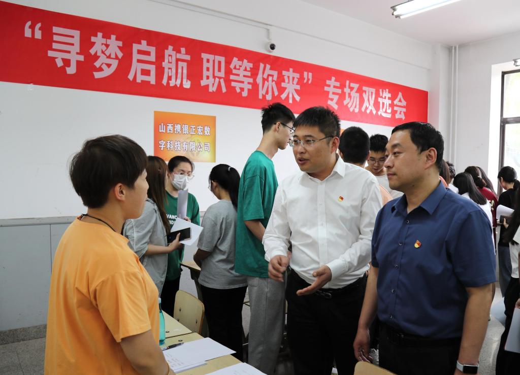 金融学院专场双选会邀请了中邮证券山西分公司、中国银河证券山西分公司、山西携银正宏数字科技有限公司、中国人民财产保险股份有限公司太原市分公司、中国大地财产保险股份有限公司太原中心支公司5家企业,提供就业岗位99个,达成初步就业意向54个,拟录用29人。