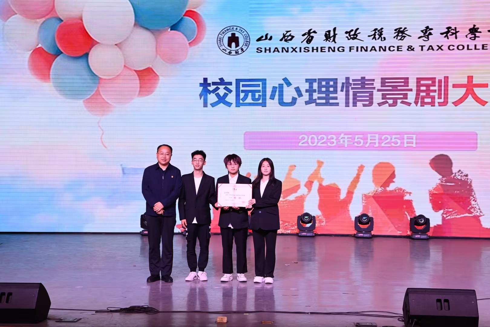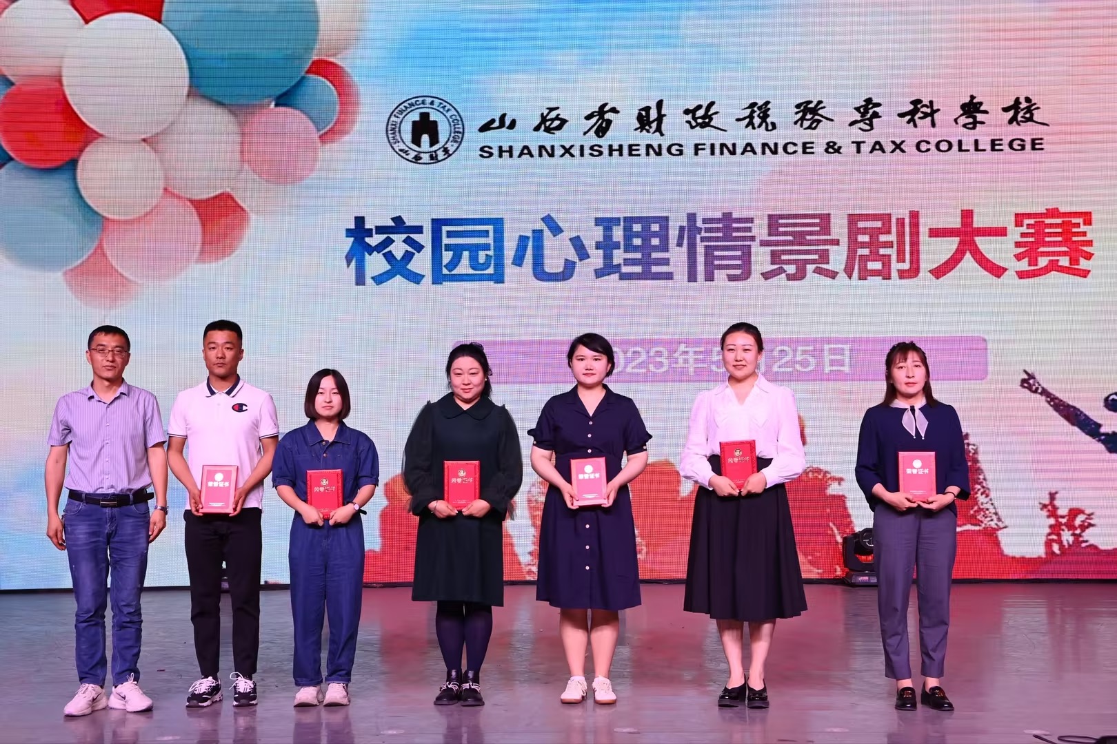 大赛特邀图书馆馆长王俊琪、校团委副书记段凌燕、马克思主义学院副院长杨佳佳、组织部老师杨艳春、大学生心理健康教育与咨询中心专职心理老师刘荣、吴焱担任评委。比赛中,各参赛队伍表现出色,演员们通过生动的语言和形象的表演,将同学们在日常学习和生活中的心路历程巧妙地展现出来。经过评委们的认真评选,最终会计学院荣获本届校园心理情景剧大赛一等奖,信息学院、财税学院荣获大赛二等奖,旅游学院、商学院和金融学院获大赛三等奖。活动最后,毛军旗及各学院党总支书记、评委老师分别为本届心理健康知识竞赛和心理情景剧比赛的各位获奖选手以及荣获2022-2023学年心理健康教育工作先进教师颁发了荣誉证书。