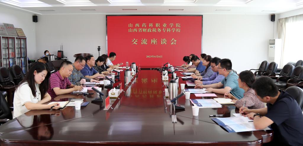 6月6日下午,山西药科职业学院党委副书记、院长张轩萍一行来bat365交流调研。党委副书记、校长李赟鹏主持会议,办公室、人力资源部、教务部、财税学院、数字商务学院、教辅党总支、信息技术中心、科研服务中心等部门有关人员参加座谈。
