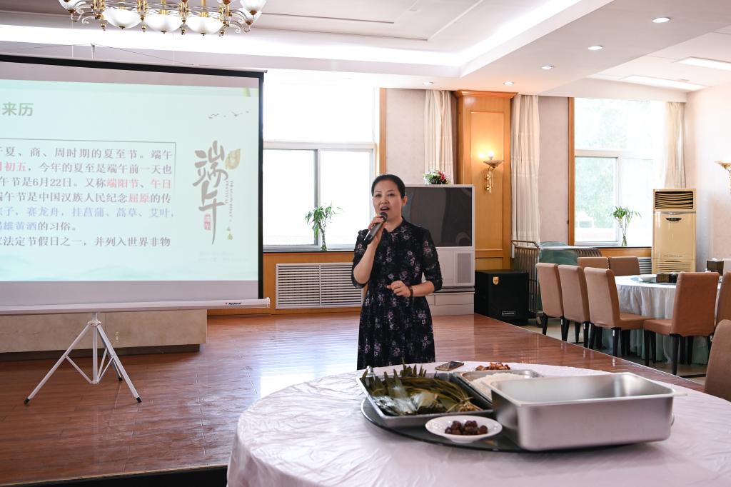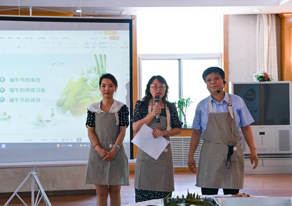 此次活动由端午故事、端午粽情、端午祝福、端午爱心、品味端午五个部分组成。活动在校党委委员、副校长、妇联主席郭艳萍的祝福声中拉开序幕。公共课教学部教师刘秀芳、崔晨丽深情地讲述了端午节的由来和我国南北方端午习俗。