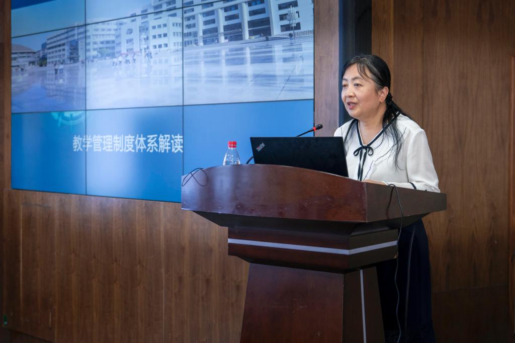 会上,教务部部长董京原就“教学管理、专业管理、教师管理、学籍管理”为框架的教学管理制度体系进行了详细解读。