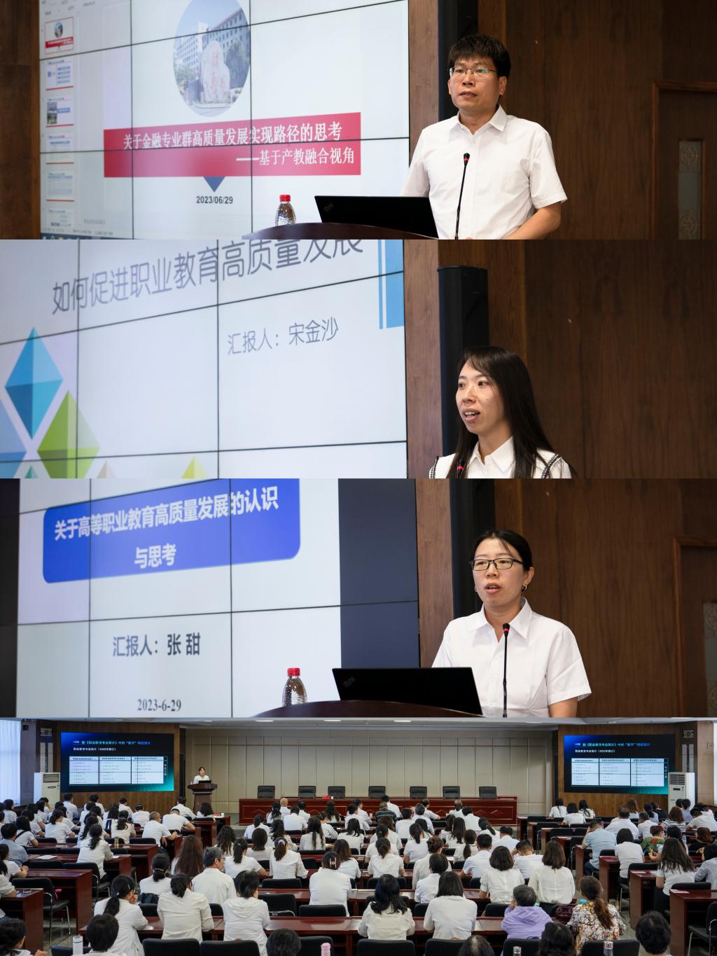 张甜博士从职业教育法的视角对高等职业教育进行分析,指出要优化职业教育类型定位、建设高水平教师队伍、打造财税教育基地,促进学校教学工作高质量发展。