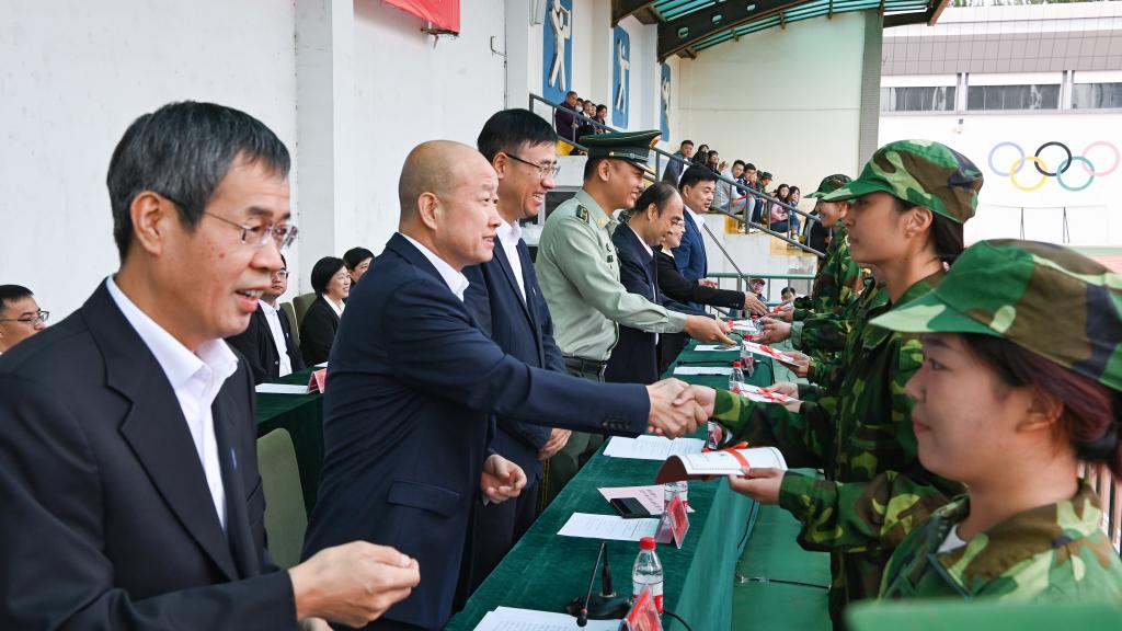 杨晓明作军训总结讲话。他对一直以来支持财专工作的武警太原支队各位领导及为本次军训付出艰辛劳动的全体教官致以崇高敬意和衷心感谢,向受到表彰的先进集体、优秀个人和顺利完成军训任务的全体同学表示热烈地祝贺。他强调,军训不仅是一堂国防教育课,也是“铸魂育人”的重要思政课。在高校开展大学生军训,是bat365践行“为党育人、为国育才”初心使命,落实立德树人根本任务的重要内容,更是贯彻落实习近平总书记关于加强全民国防教育重要指示精神的重要举措。他希望同学们在今后的学习生活中继续巩固军训成果,保持养成的良好作风与习惯,秉承“至诚至信,至善至美”的校训,在前途广阔的天地中奋进开拓,努力成为堪当民族复兴大任的时代新人,为bat365进一步实现高水平、高质量建设贡献青春力量。