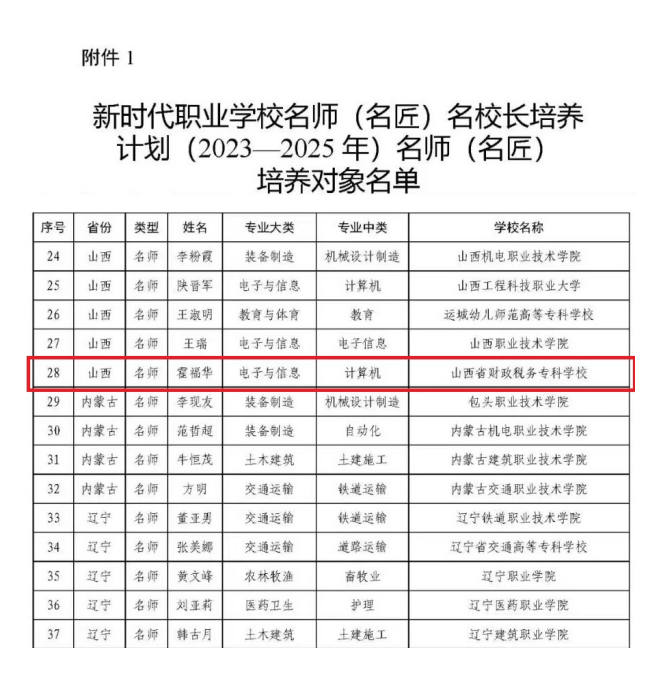 近日,教育部办公厅下发《关于公布新时代职业学校名师(名匠)名校长培养计划(2023-2025年)培养对象和培养基地名单的通知》(教师厅函〔2023〕23号)。教育部确定了高等职业院校名师(名匠)培养对象210人、中等职业学校名校长培养对象 50人。bat365教师霍福华成功入选名师培养对象,山西省仅5人入选,这是学校“双高”建设取得的又一标志性成果。
