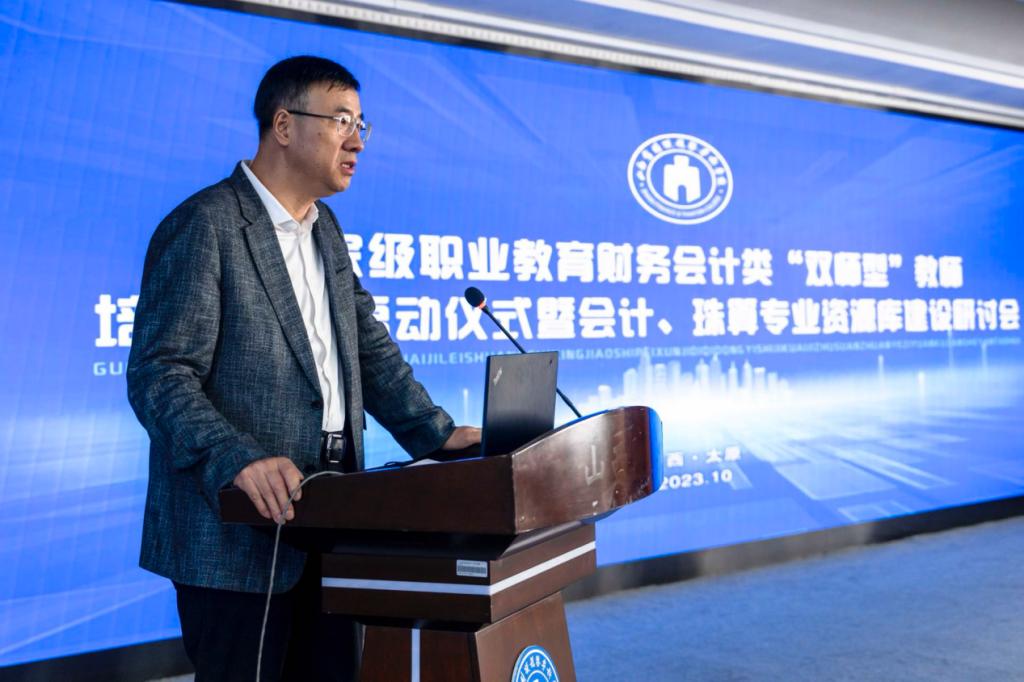 随后,李赟鹏就会计专业资源库及珠算资源库建设明确了工作要求。他介绍了教育资源库三次建设过程与背景,指明第三轮专业教学资源库建设需要关注行业和产业的数字化转型,将知识理论技能转化成教学资源,提出了建设机制的相关内容,强调了以建设专业教学资源库为基础,产出一系列标志性成果,共同推动会计专业教育的发展。