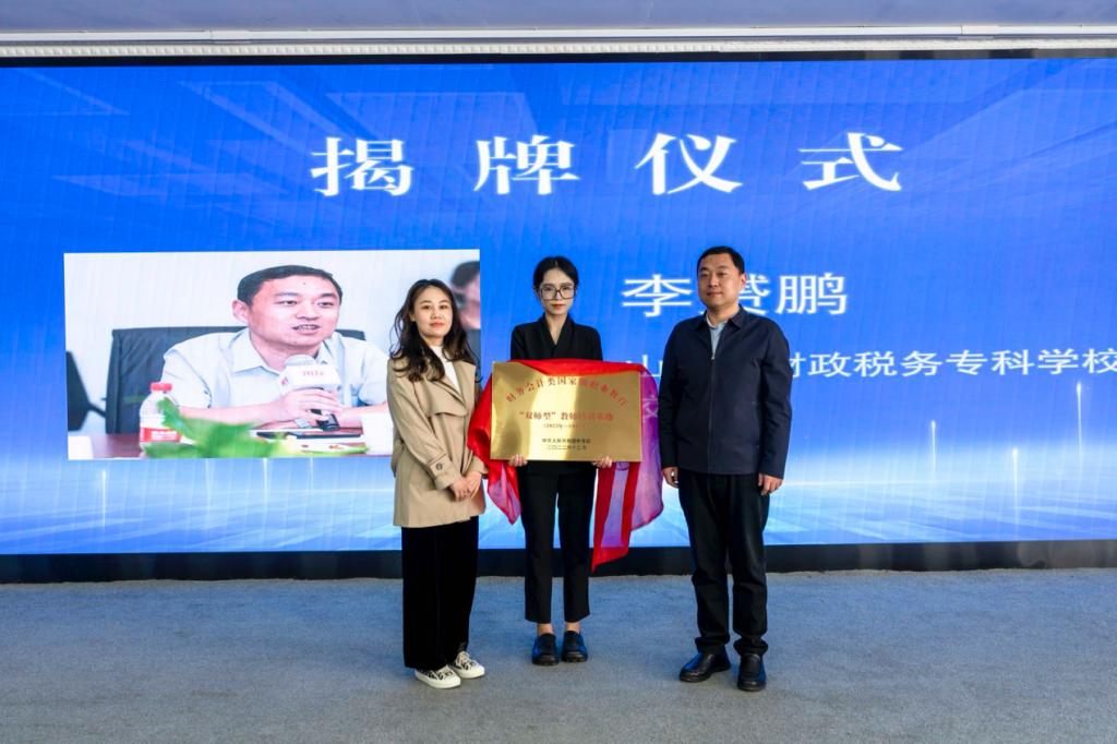 校长李赟鹏和厦门网中网软件有限公司副总裁刘青共同启动了揭牌仪式,国家级职业教育财务会计类“双师型”教师培训基地正式成立。
