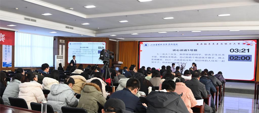 决赛分为主题班会展示、基础知识测试、谈心谈话、案例研讨、即兴演讲五个部分,旨在全面考察辅导员的理论素养及在思想政治教育、职业生涯规划、心理健康教育、日常安全管理等方面的能力。比赛现场,选手们沉着冷静、反应敏捷,将理论与案例情景相结合,直击问题的关键,立体地展示了自身的理论素养和专业素质。比赛期间,校党委书记秦华伟,校党委委员、副校长郭艳萍亲临现场观摩指导。
