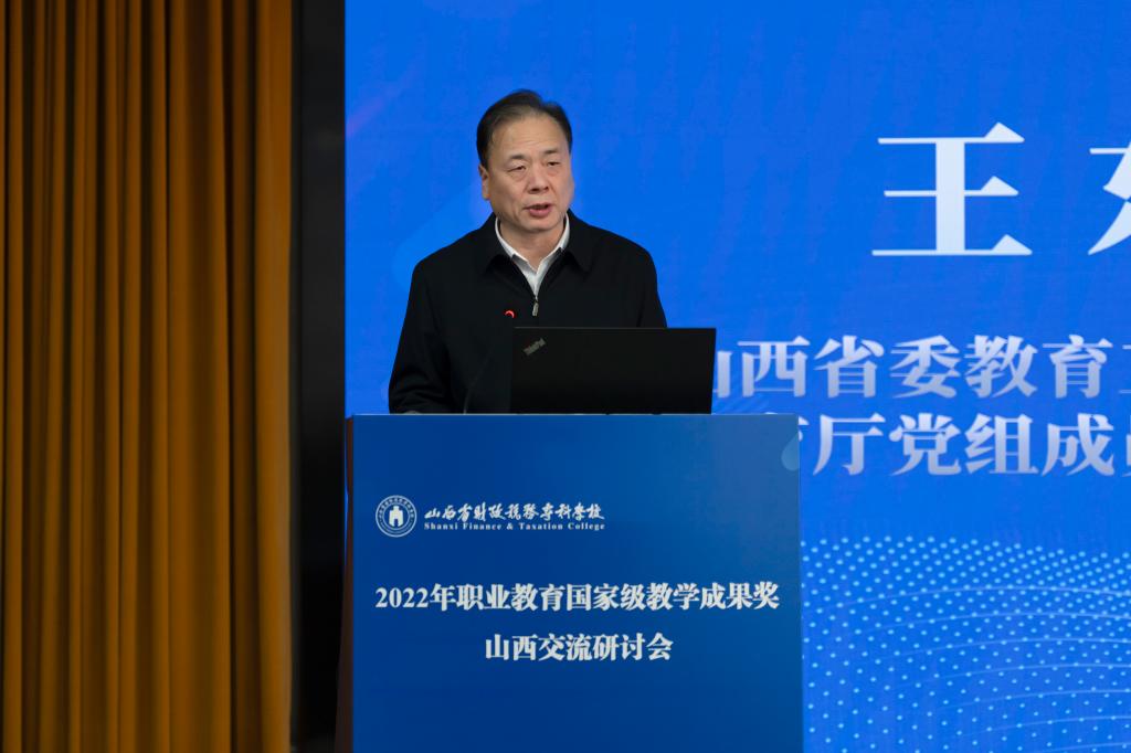 王东在讲话中指出,山西省教育厅高度重视职业教育教学成果奖的培育与推广,2022年职业教育国家级教学成果奖中,我省获得一等奖1项,二等奖5项,创我省最好记录。他强调,要加强实践应用,在实践中进一步深化研究,在实践中进一步完善提升,不断提升教学成果的质量和水平;要加强推广创新,各地各校要搭建更多的教学成果培育、发现、推广、共享平台,促进优秀教学成果的交流,充分发挥优秀教学成果的辐射、引领和带动作用,让更多的地区和学校共享先进理念和优秀经验;要坚守教书育人,努力把教学成果转化为可借鉴、可复制、可实践的策略、方法、方案,进一步创造性地提出科学的思维、方法和措施,更好地解决教育教学实践中的实际问题。