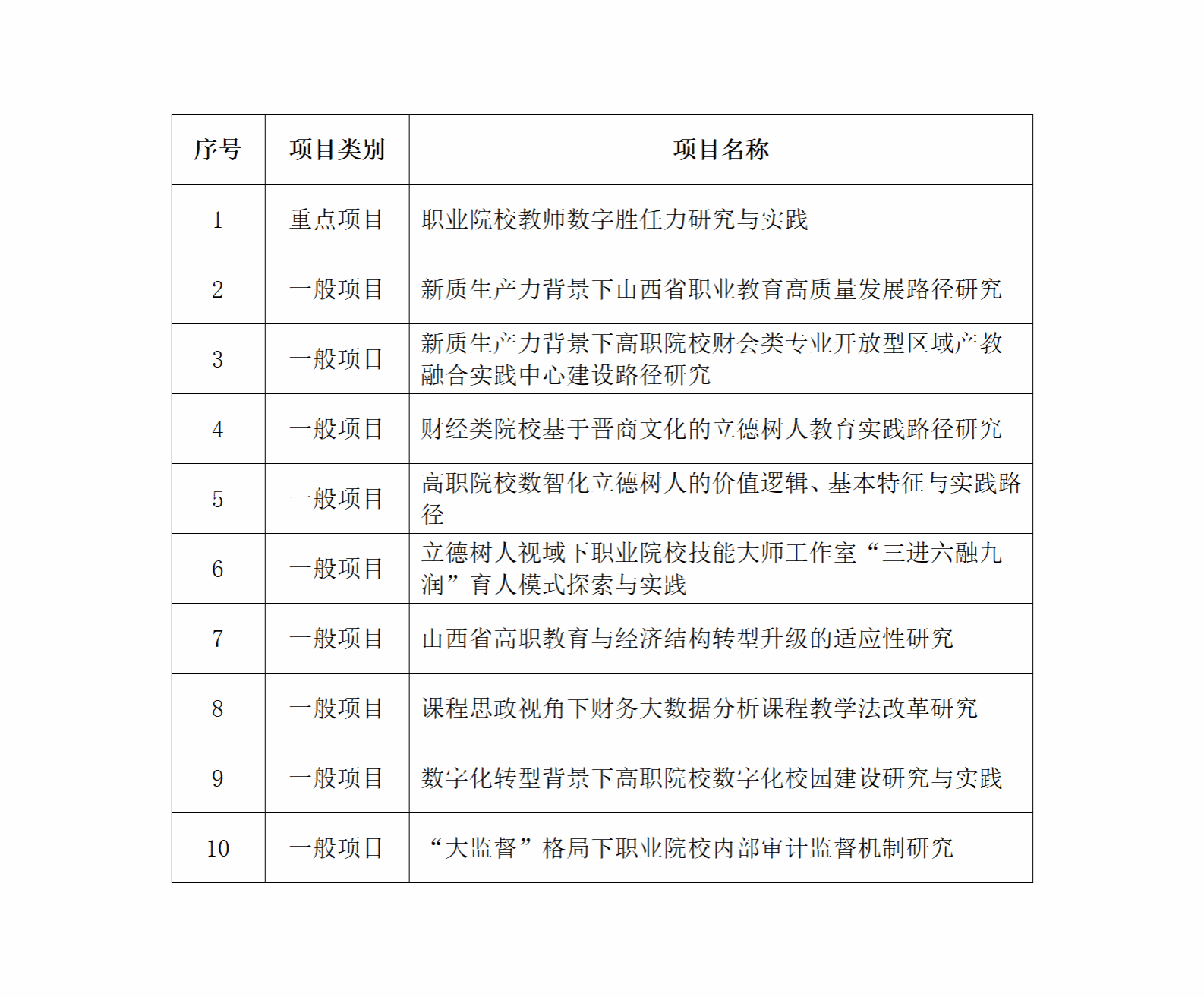 关于山西省教育厅2024年度职业教育教学改革与实践研究项目拟推荐名单的公示