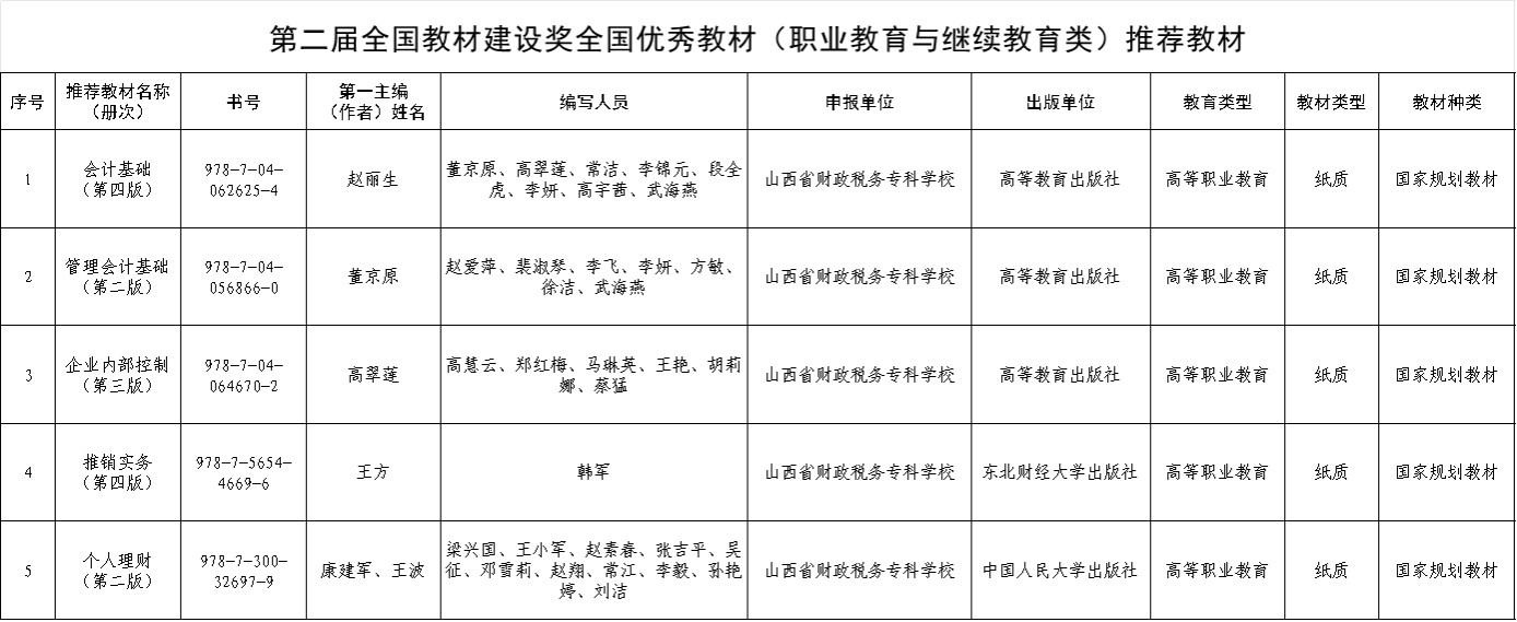 根据国家教材委《关于开展第二届全国教材建设奖评选工作的通知》和山西省教育厅《山西省教育厅关于组织申报第二届全国教材建设奖的通知》(晋教材函[2025]4号)文件要求,经个人申报、资格审查、专家评审,现将拟推荐名单予以公示,具体名单如下。