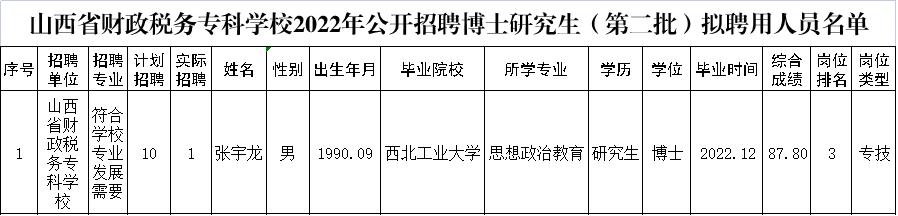 bat365正版唯一官网 关于2022年公开招聘博士研究生(第二批) 拟聘用人员名单的公示