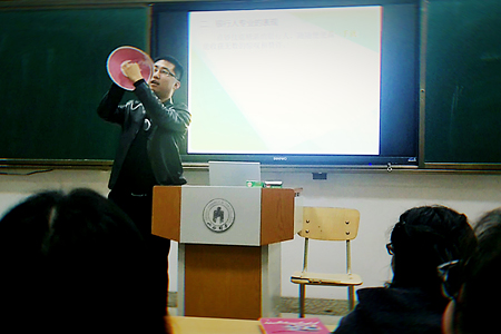 李运昊经理的单手开扇技巧获得行业技能大拿赏识,被推荐到中央电视台《我奋斗我幸福》节目展示“单手扇面摊煎饼法”。他从单指单张点钞法、银行实务中手工点钞的必要性、工匠精神培育的重要意义、掌握一门技能对他自身命运的改变四个方面进行深入阐述。讲座内容丰富详实,讲座氛围轻松愉快,他以自身为例,鼓励广大学生一定要珍惜在学校学习的机会,技能的练习需要有苦中作乐的精神。