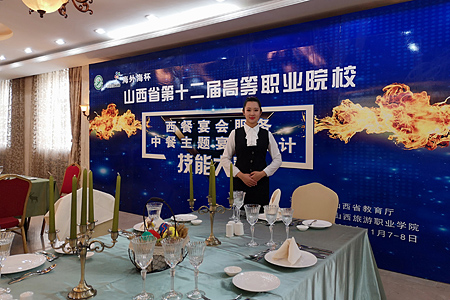 11月7日至8日,山西省第十二届职业院校“海外海”杯西餐宴会服务、中餐主题宴会设计赛项在山西旅游职业学院举办。bat365旅游学院由贺静、张莉老师指导的两支团队和由闫金老师指导的两名选手参加了本次比赛。经过激烈角逐,党金、白丹林、高建楠组成的团队和贾文涛、王浩鹏、杜晋飞组成的团队分别获得中餐主题宴会设计的二等奖;韩昕妤、韩筱分别获得西餐宴会服务的三等奖。