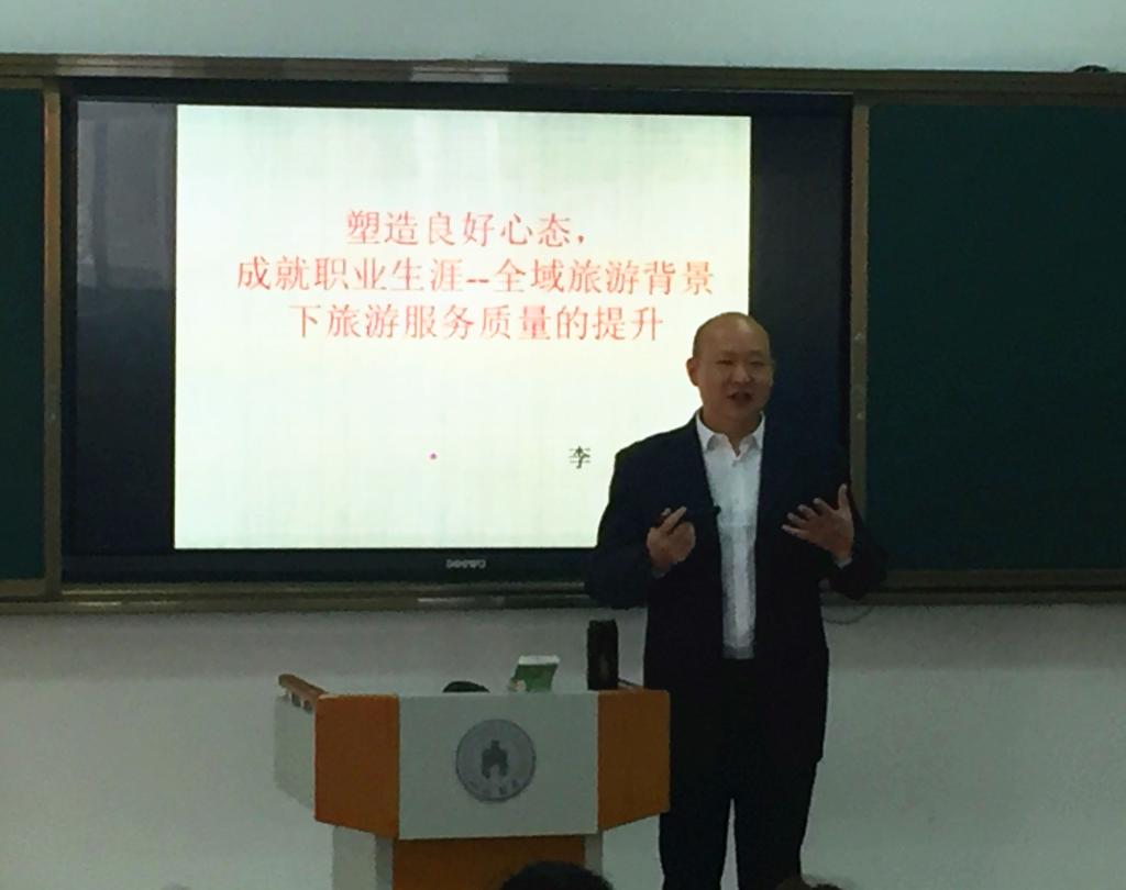 4月10日,旅游学院邀请国家文化和旅游部“万名旅游英才计划”技术技能大师、山西文华国际旅行社总经理李瑛,在bat365南校区阶教205作了题为《塑造良好心态,成就职业生涯---全域旅游背景下旅游服务质量的提升》专题讲座。旅游学院院长谢红霞、副院长高薇、部分专业老师及即将参加中期顶岗实习的2017级旅游管理和导游专业学生聆听了讲座。