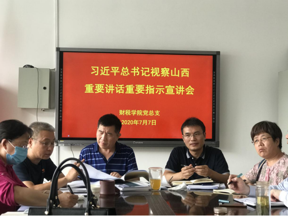 7月7日下午,财税学院党总支在学院会议室举办习近平总书记视察山西重要讲话重要指示宣讲会。学院全体教职工参加了宣讲会。