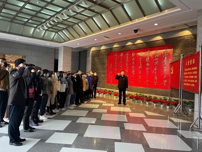 下午3时主题活动正式开始。旅游管理系党总支书记孙景文同志带领48名师生面向党旗,庄严宣誓。各位老师向同学们讲到,2021年是中国共产党成立100周年,我们正在“两个一百年”奋斗目标历史交汇的关键节点,历史是最好的教科书,只有学党史才能了解我党为了中华民族崛起所做的奋斗和牺牲,才能理解党领导人民从艰难困苦逐步走向胜利的伟大历史,才能深刻感悟共产党人的初心和使命。各位同学要以本次入党宣誓活动为契机,在今后的学习和生活中树好形象,做好榜样,时刻牢记共产党员的身份,争做习近平新时代中国特色社会主义思想的传播者、践行者,在新时代中国特色社会主义建设的伟大历史征程中实现自我的价值。