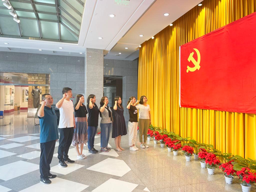 在纪念馆内,通过一张张珍贵的历史图片,一幅幅生动的油画作品和一份份详实的文献资料,大家深入地了解了彭真同志生平事迹和中共太原支部的发展历程,深刻地感受到革命前辈们为了革命事业奋不顾身的崇高精神。参观结束后,学生工作部党支部书记杜斐带领全体党员重温了入党誓词。党旗下,同志们心潮澎湃,再一次向党作出庄严承诺,传达出共产党员忠诚于党、服务人民的坚定信念和执着追求。