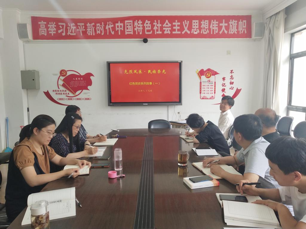 为庆祝建党百年华诞,丰富党史学习教育形式,6月23日,科研处党支部和财务处党支部邀请学校党史讲师团成员丁光耀老师宣讲红色党史系列故事。