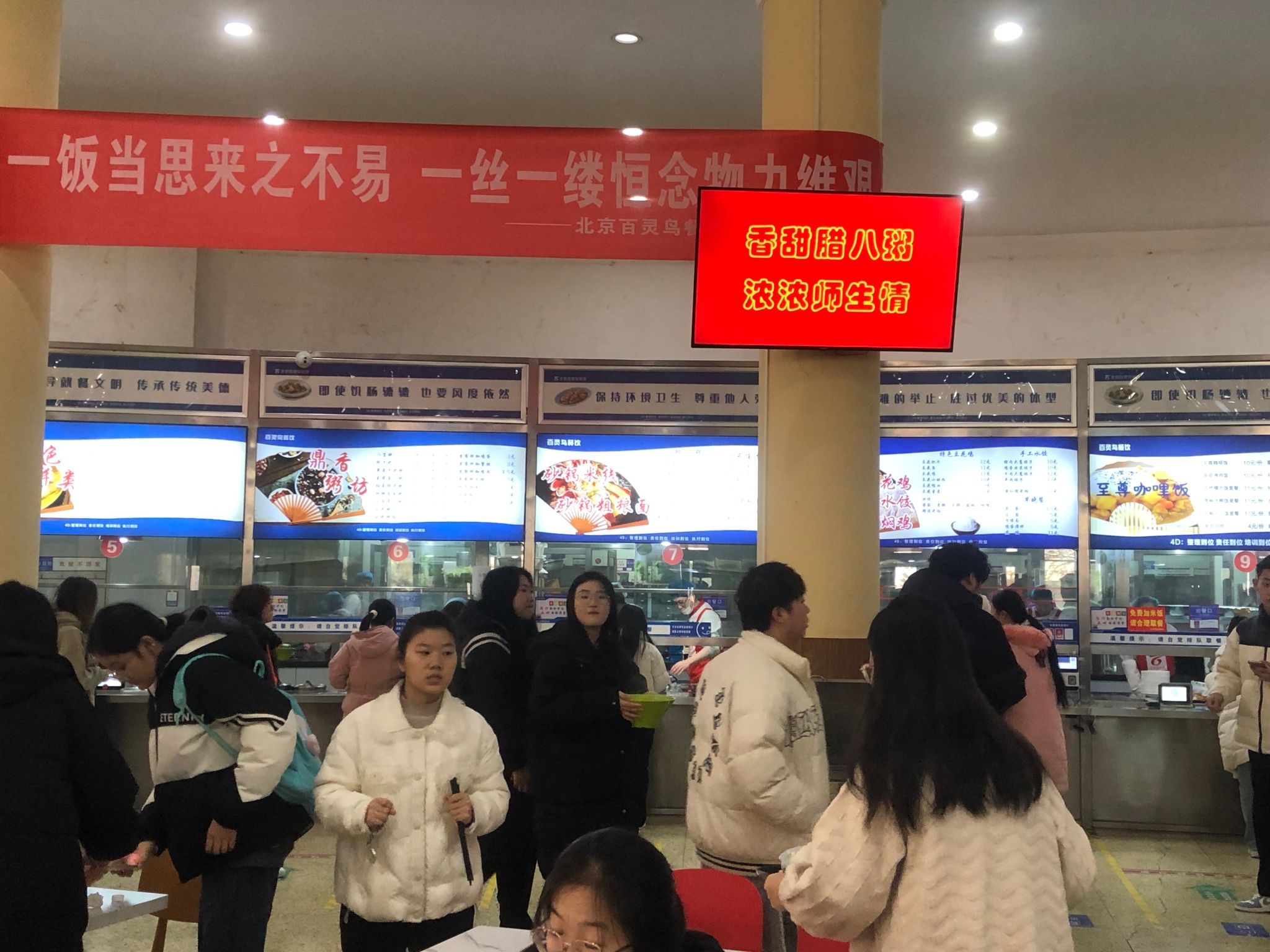 “过了腊八就是年,一年一岁一团圆”。农历腊月初八是我国传统节日--腊八节,在这一天吃上腊八粥是全国各地老百姓最传统、最讲究的习俗。为弘扬中华优秀传统文化,打造“人文后勤”,后勤党总支、后勤保障部联合百灵鸟餐饮公司为全校师生免费提供香甜可口的腊八粥。
