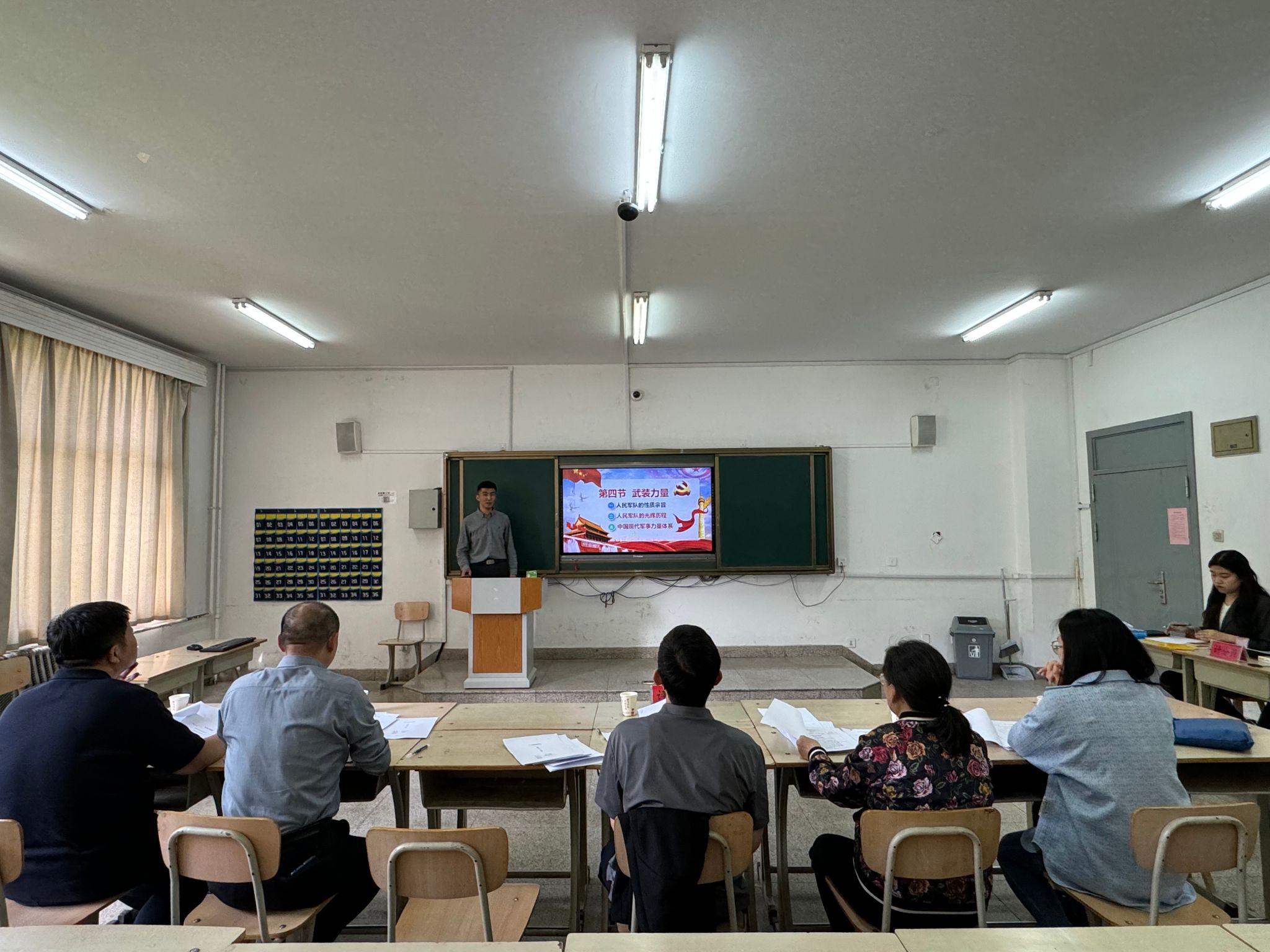 为进一步规范军事理论课的教学管理,优化教学过程,提升军事理论课教师的教学能力,切实做到以赛促学,以赛促教。4月25日上午,学生工作部在1305教室举办了军事理论课教师教学能力大赛。教学指导委员会成员、财税学院裴淑琴教授,马克思主义学院负责人陈彪,宣传部副部长郭慧斌,职业教育研究所所长陈光博士,教师代表荆睿峡担任大赛评委,军事教研室5名教师参加比赛。