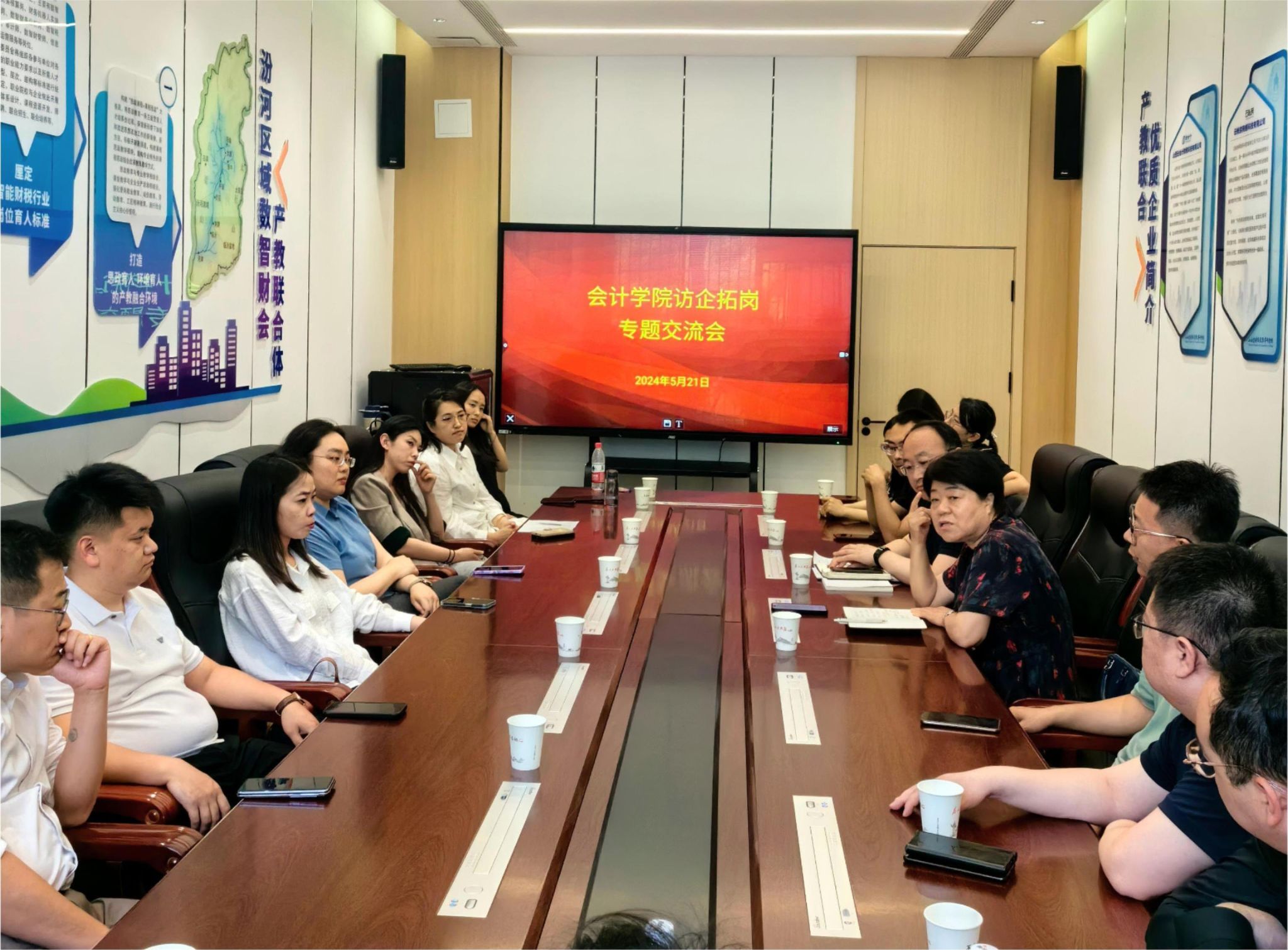 为持续推进毕业生就业工作,深入开展“访企拓岗促就业”专项行动,精准对接企业需求,进一步强化校企合作,5月21日,会计学院邀请山西云会计财税科技有限公司、唐诚控股集团有限公司、山西和创财税集团有限公司等十余家行业企业开展访企拓岗专题交流。会计学院院长高翠莲、党总支书记赵云及相关企业代表参加了会议。
