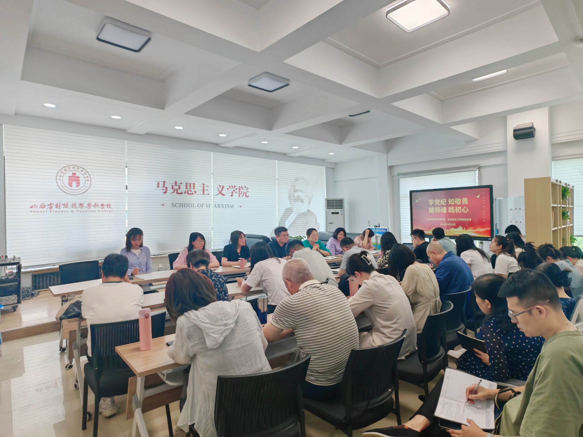 为深入学习贯彻习近平总书记关于全面加强党的纪律建设的重要论述和习近平总书记关于教育的重要论述,将党纪学习教育和师德师风建设有机融合。5月28日下午,财税学院教师党支部、马克思主义学院党支部共同开展了“学党纪 知敬畏 铸师魂 践初心”主题党日活动,财税学院、马克思主义学院全体教师参加此次活动。