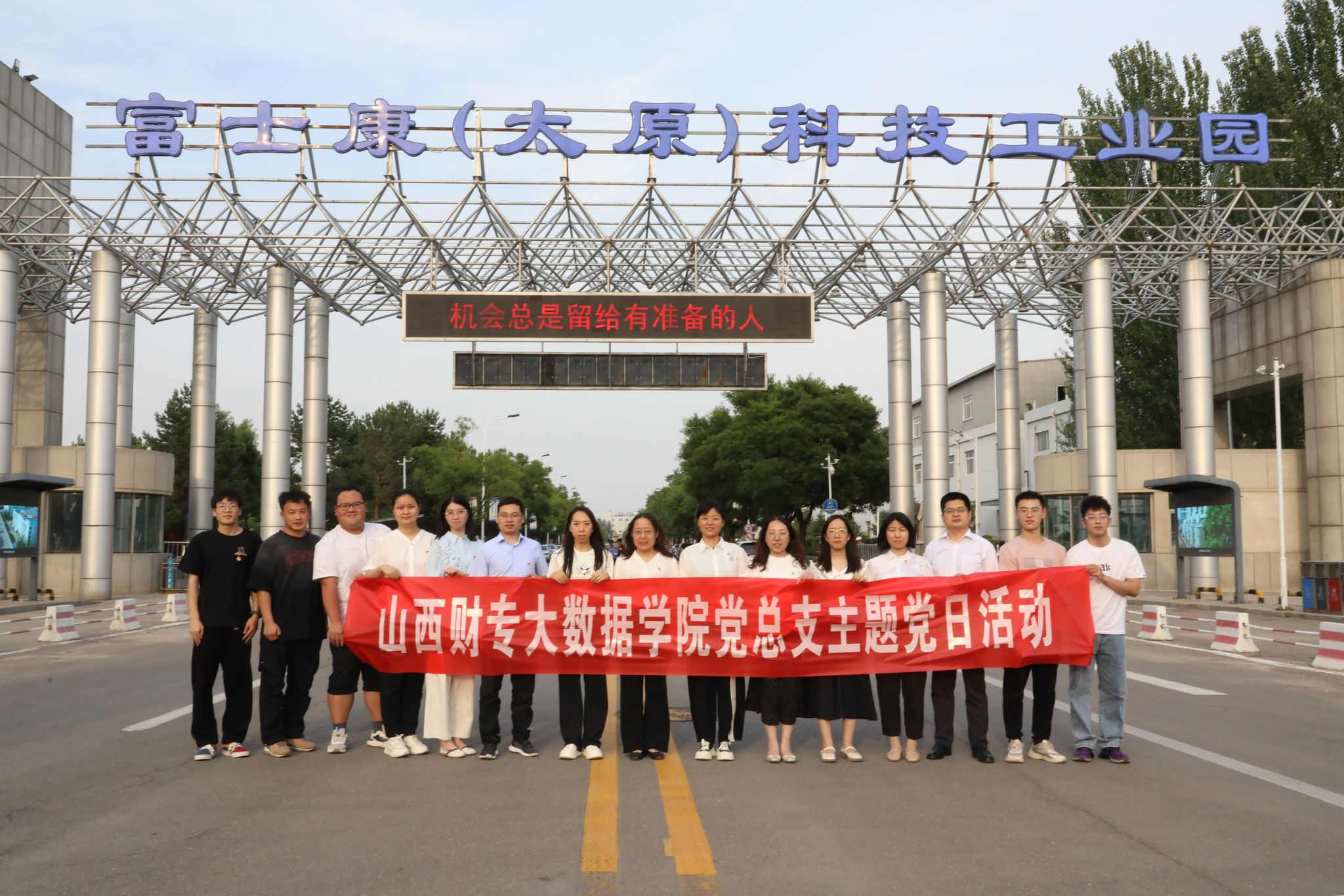 5月28日,大数据学院教师党支部书记、院长乔冰琴,学生党支部书记张建英,教师党支部教师及部分学生代表一行15人赴富士康(太原)科技工业园开展主题党日活动。此次活动旨在加强校企合作力度,实现校企优势资源互补与共享,提升人才培养质量,并进一步拓宽学生实习和就业渠道。