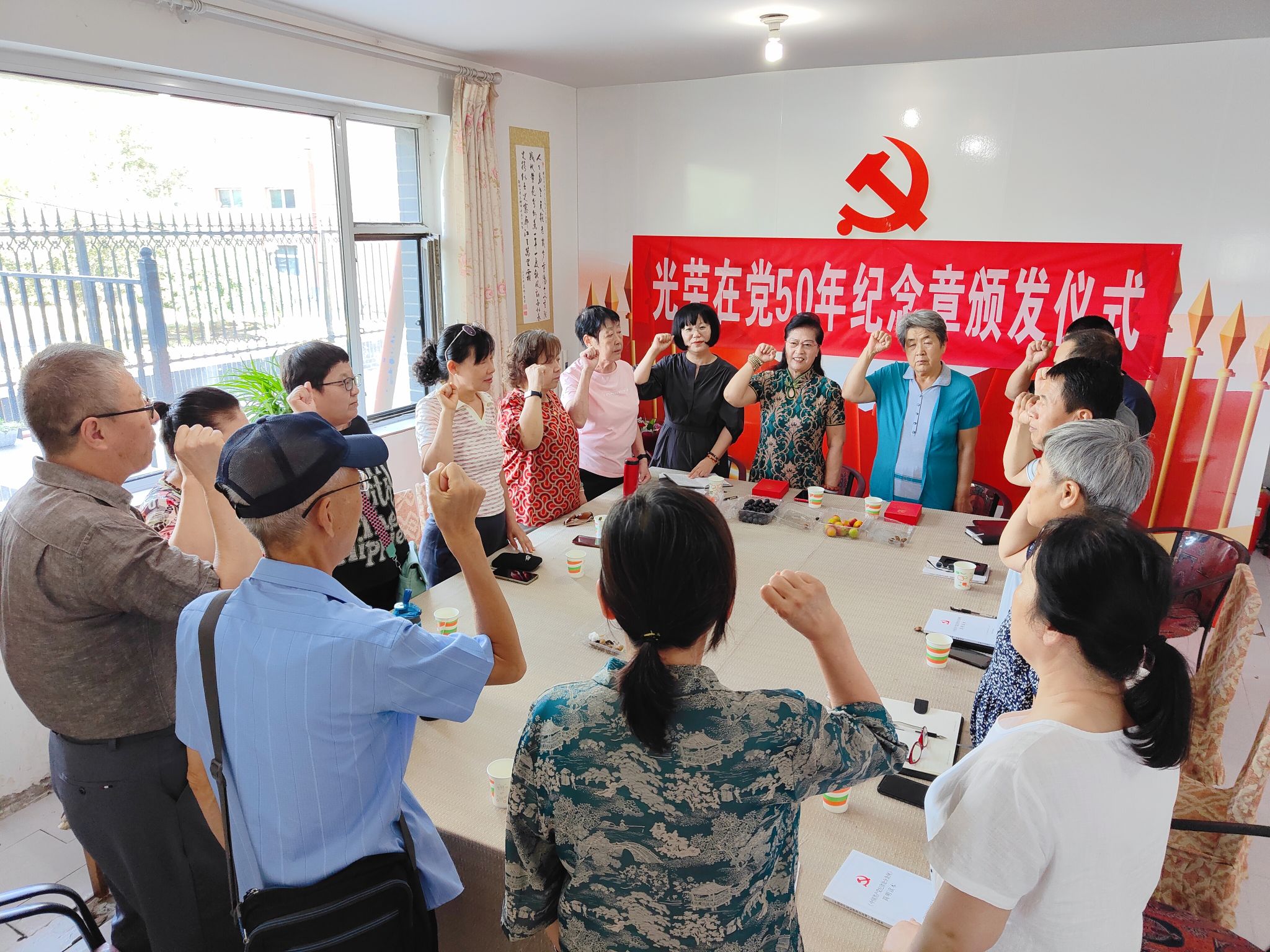 活动现场,离退休党总支全体党员向“光荣在党50年”的王秀英、陶凤英两位同志表示热烈的祝贺,向一生为党和人民的事业勤恳工作、努力奋斗、忠诚奉献的全体老党员表示崇高的敬意。随后,为王秀英、陶凤英两位同志颁发“光荣在党50年”纪念章并重温入党誓词。老党员代表陶凤英同志在发言中表示,作为一名老党员,我将以此为动力,光荣在党每一天,用一个党员的高标准要求自己,永远感党恩、听党话、跟党走。