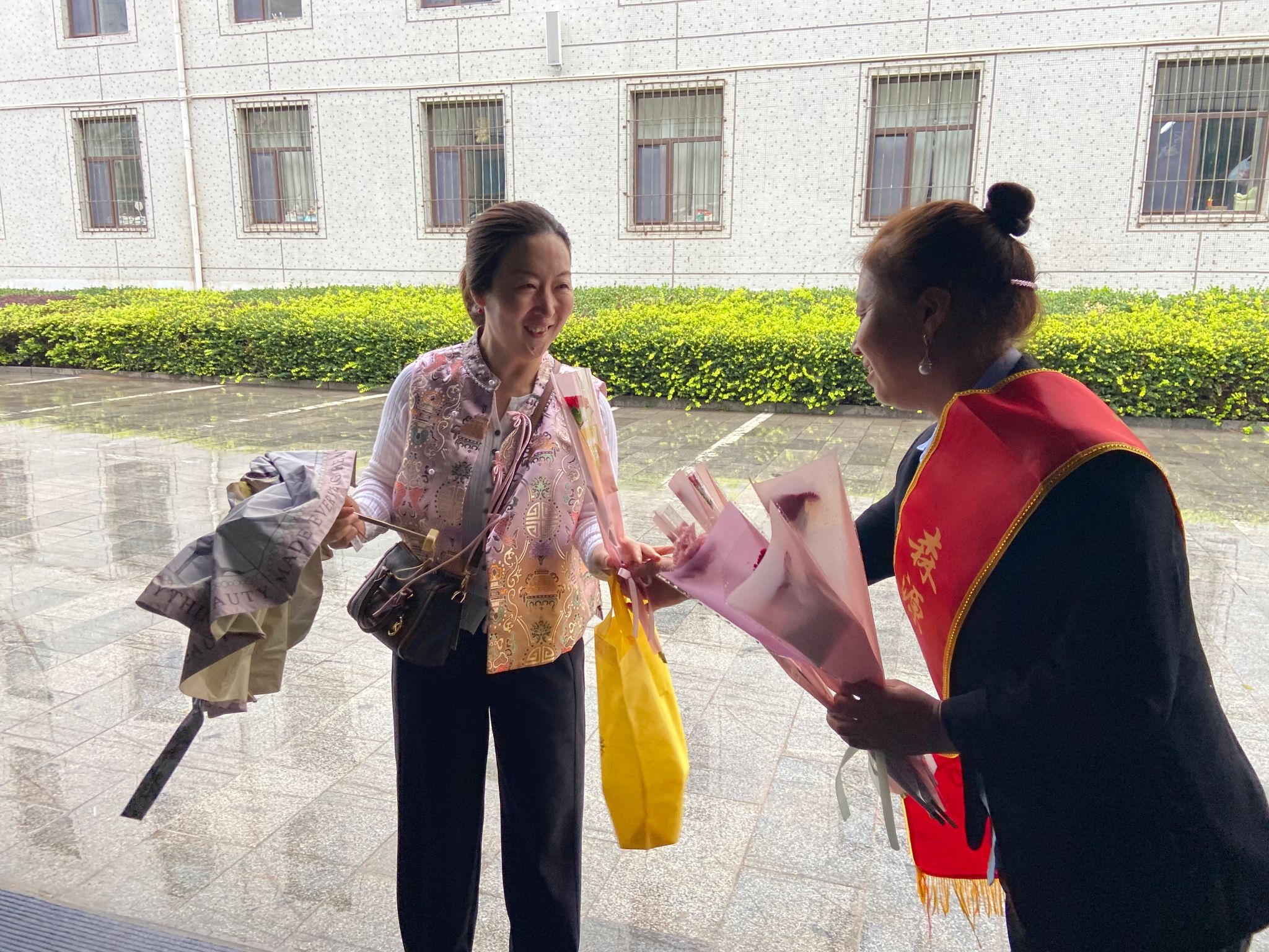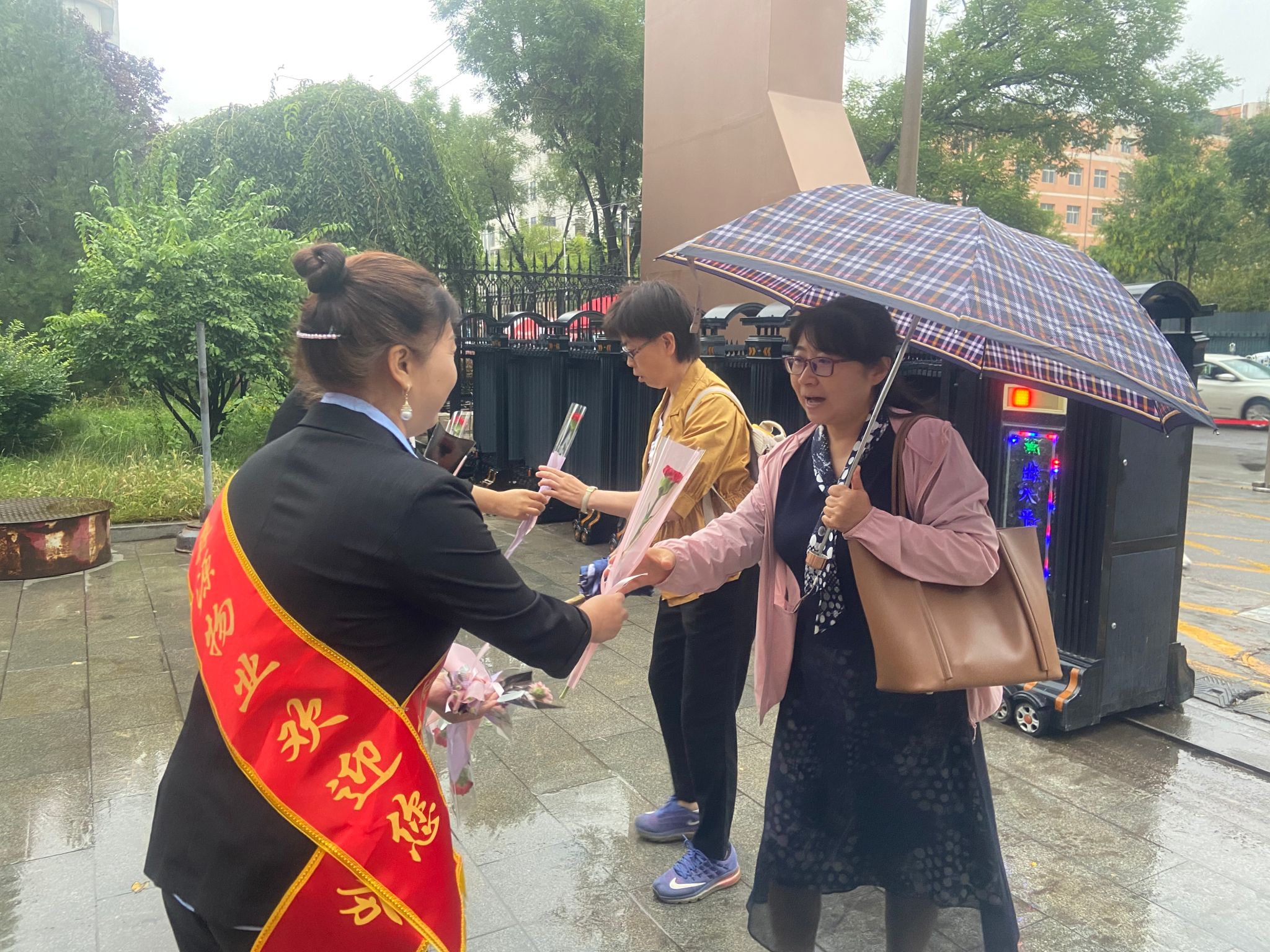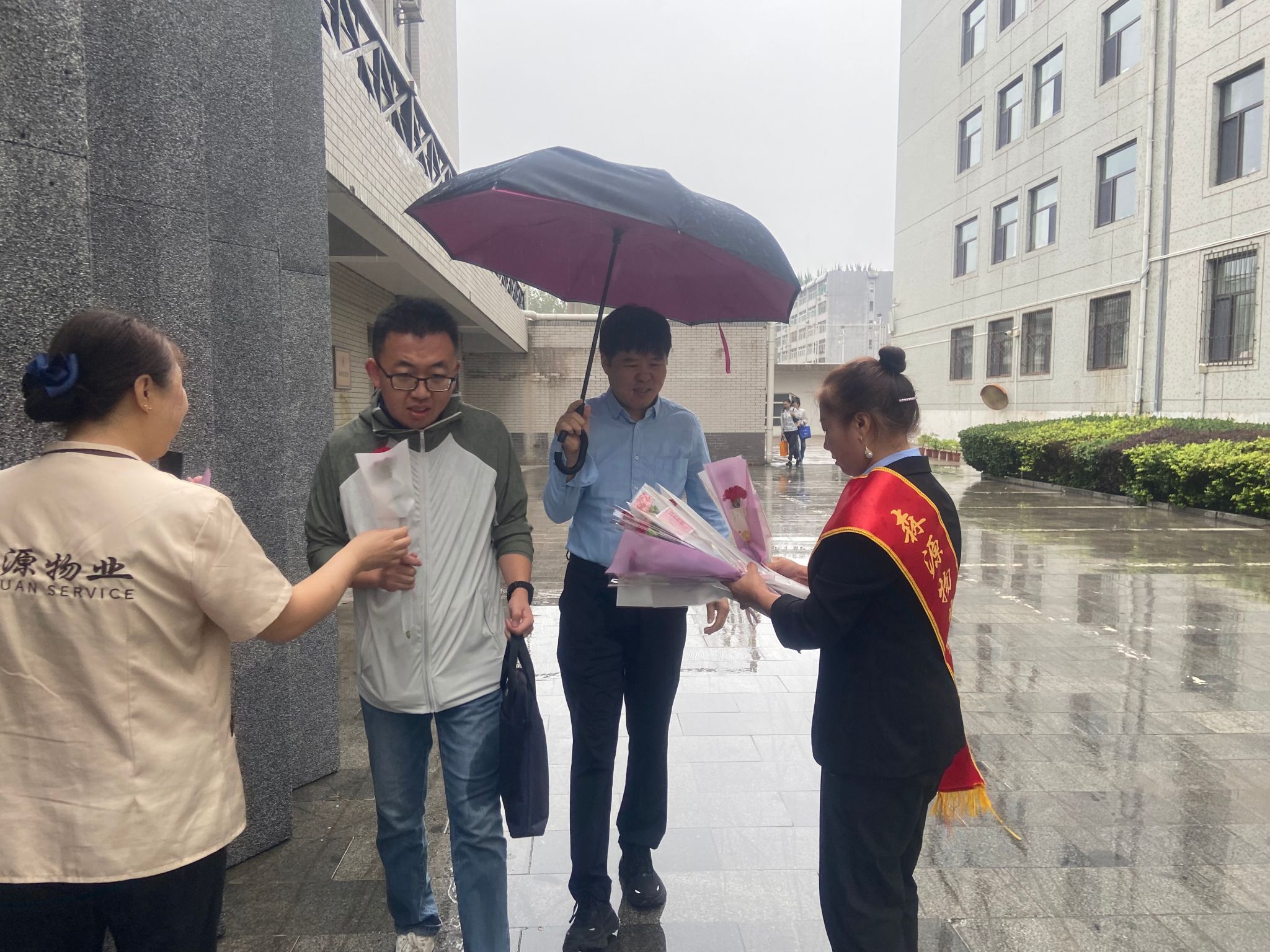 9月10日清晨,物业公司的代表们手捧一束束鲜花,带着温暖的笑容,为每一位老师送上了这份特别的节日祝福。“老师们,您们辛苦了!在这特别的日子里,我们想用这小小的花束,传递我们对您们无尽的感激之情。”收到鲜花的老师们脸上洋溢着惊喜与幸福的笑容。